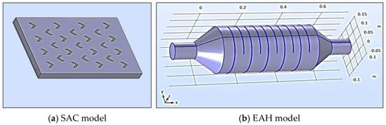 The first step in analyzing any engineering system is constructing a geometric model, which serves as the basis for the required modeling domain. Analyzing thermal systems based on their geometric form is essential, especially for energy-saving systems, including uniform element dimensions and different shapes, as is the case with barriers with other distributions. Therefore, it is necessary to rely on geometric extrapolation through modern engineering programs. This modeling comprised two parts: the SAC and EAH models.