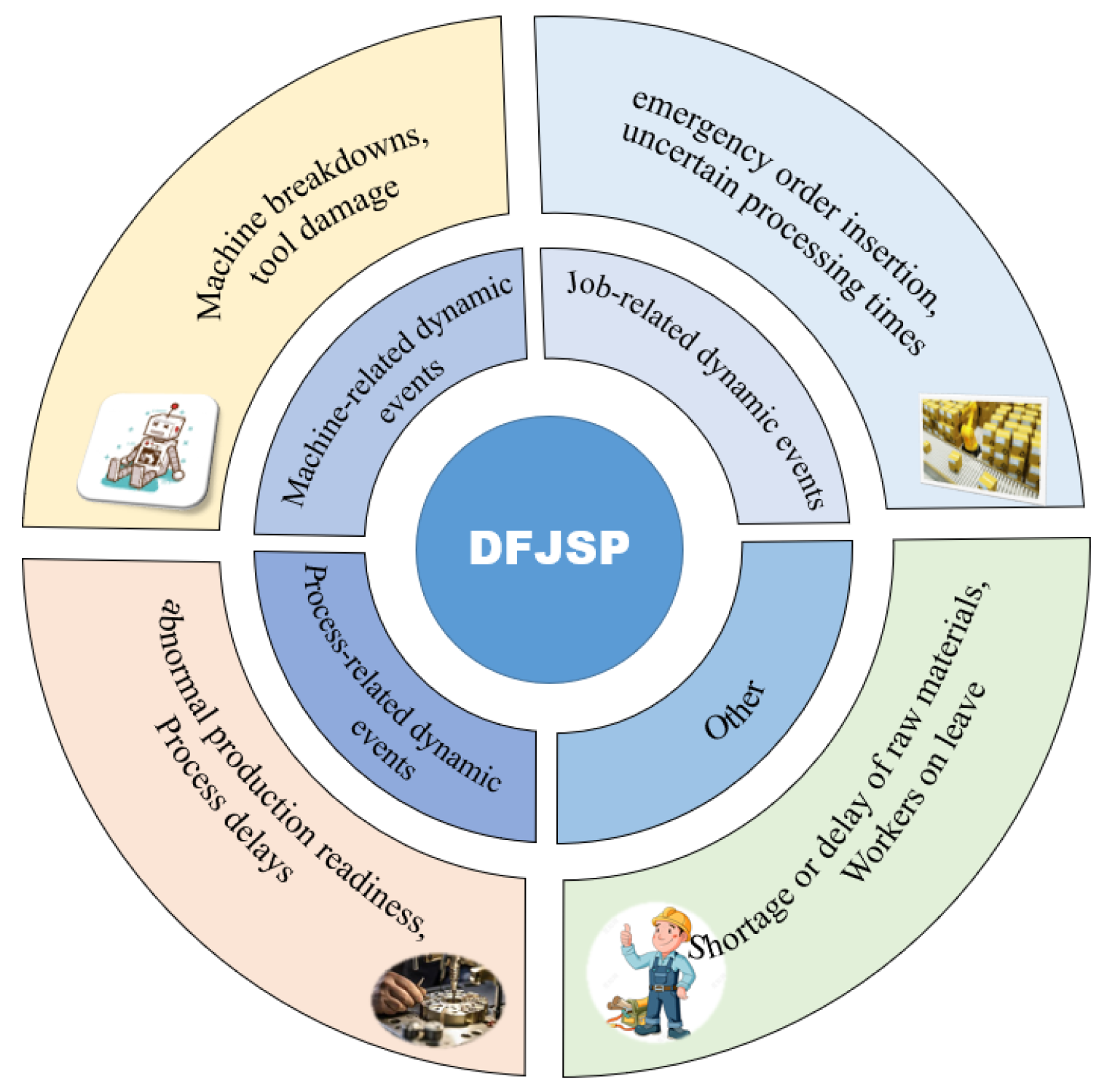 - Quality Issues: Rework or scrap due to quality defects not only consumes extra processing time but also disrupts the downstream schedule [89]. Incorporating feedback from quality inspection systems can enhance schedule robustness.