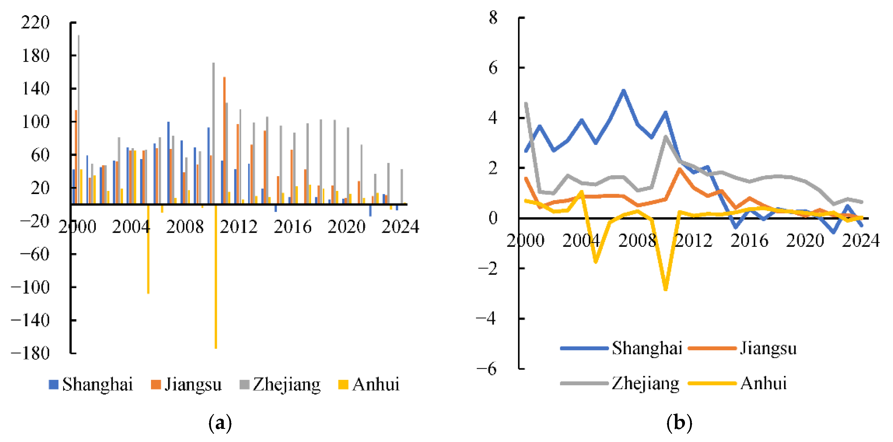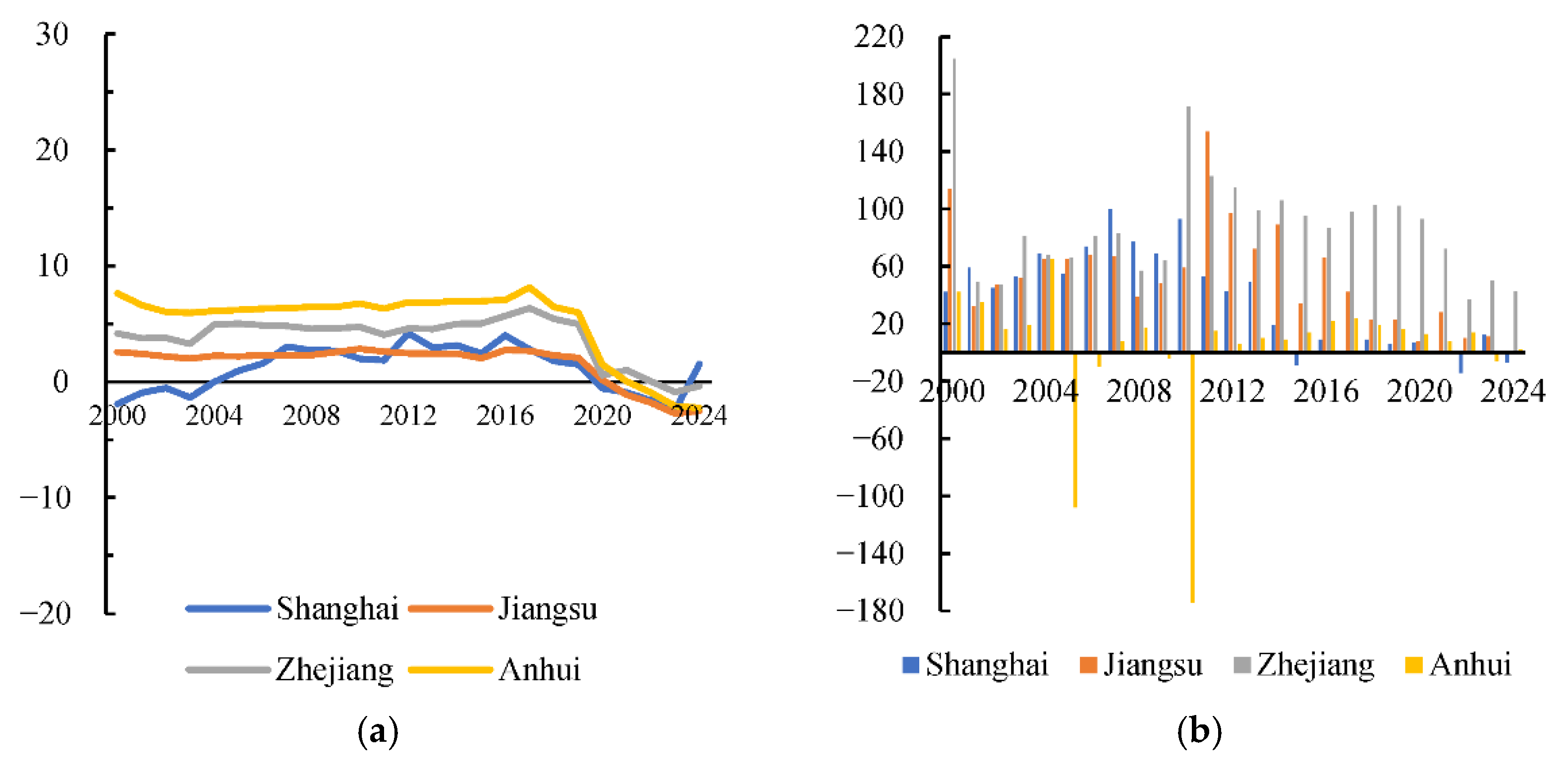 Qin, X.; Yang, J. Population Growth–Decline Differentiation and Regional Inequality in the Yangtze River Delta: Implications for Sustainable Regional Development. Sustainability 2025, 17, 11011. https://doi.org/10.3390/su172411011