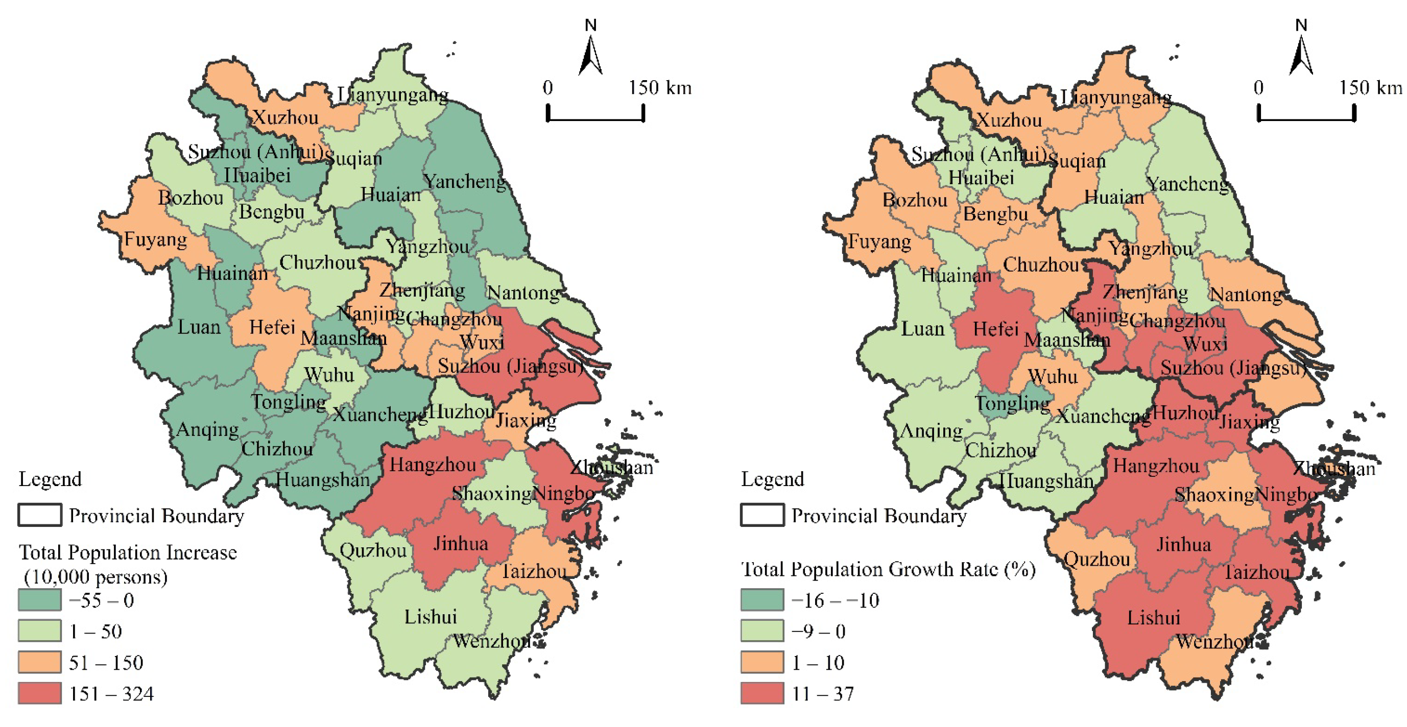 4. Regional Differentiation of Population Growth and Decline in the YRD