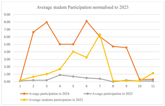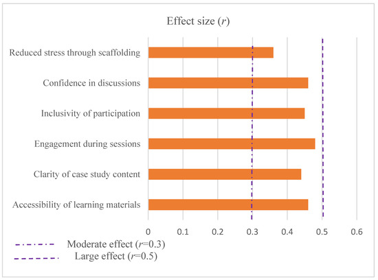 Quantitative data were analysed using descriptive and comparative statistics, including cohort difference tests. Qualitative data from open-ended survey questions and interviews were analysed thematically, following an inductive approach [32,51,52] to identify recurrent themes relating to engagement, inclusivity, and perceived barriers. The researcher read all responses and transcripts repeatedly to gain familiarity with the data and generated initial codes directly from participants’ words in a data-driven manner. Codes were iteratively refined and grouped into broader themes such as accessibility, engagement, inclusivity, and cognitive load. Although the coding was conducted by the instructor–researcher, an assistant researcher anonymised transcripts and verified the coding scheme for reliability. Reflexive notes and cross-checking were used throughout to reduce interpretive bias.