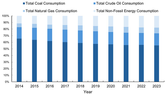 China’s primary energy consumption structure, 2014–2023. Source: China energy statistical yearbook.