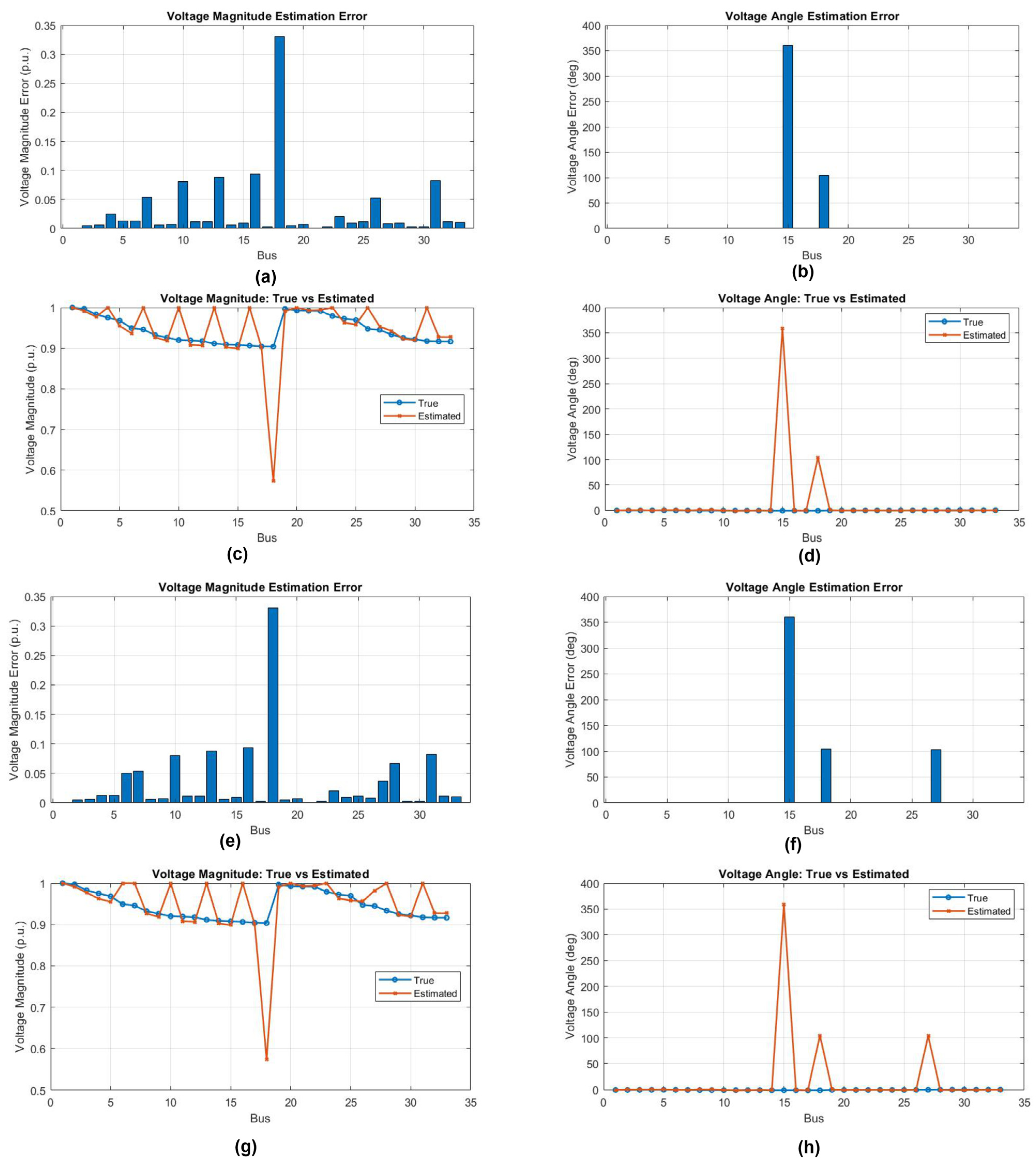 3.6. State Estimation Using Forward-Backward Sweep Algorithm and WLS Algorithm