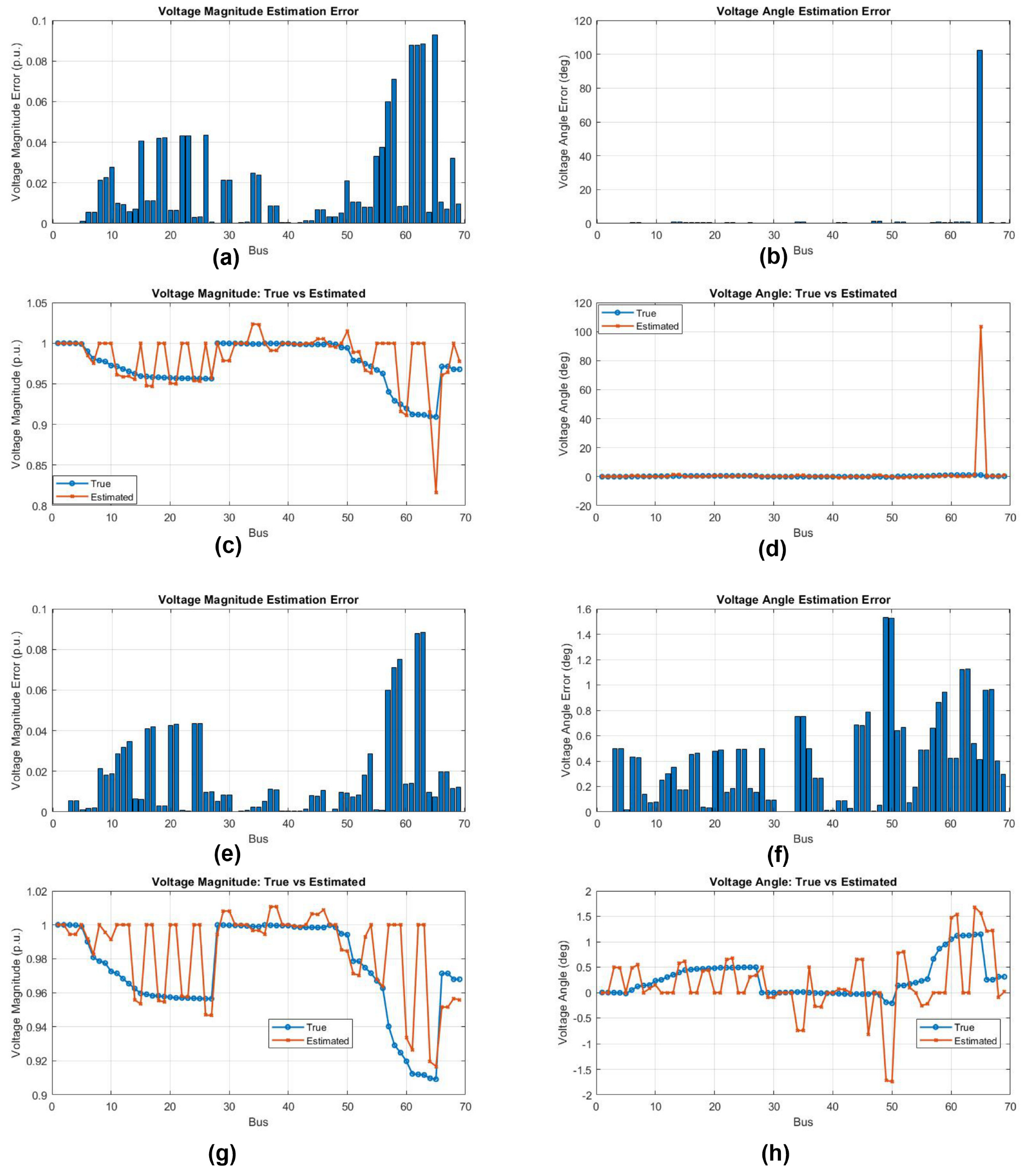 - Khanam, N.; Rihan, M.; Hameed, S. PMU-data assisted state estimation of distribution network with integrated renewables: A comprehensive review. Bull. Electr. Eng. Inform. 2025, 14, 2456–2470. [Google Scholar] [CrossRef]