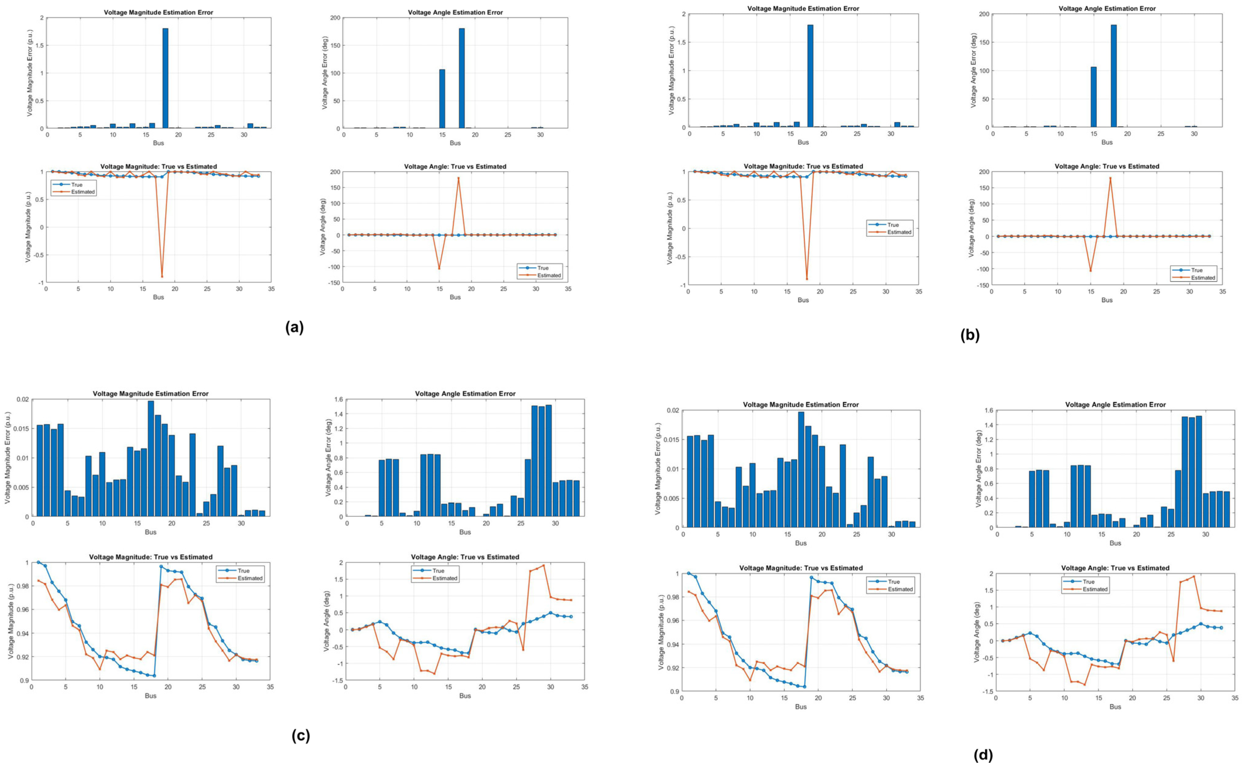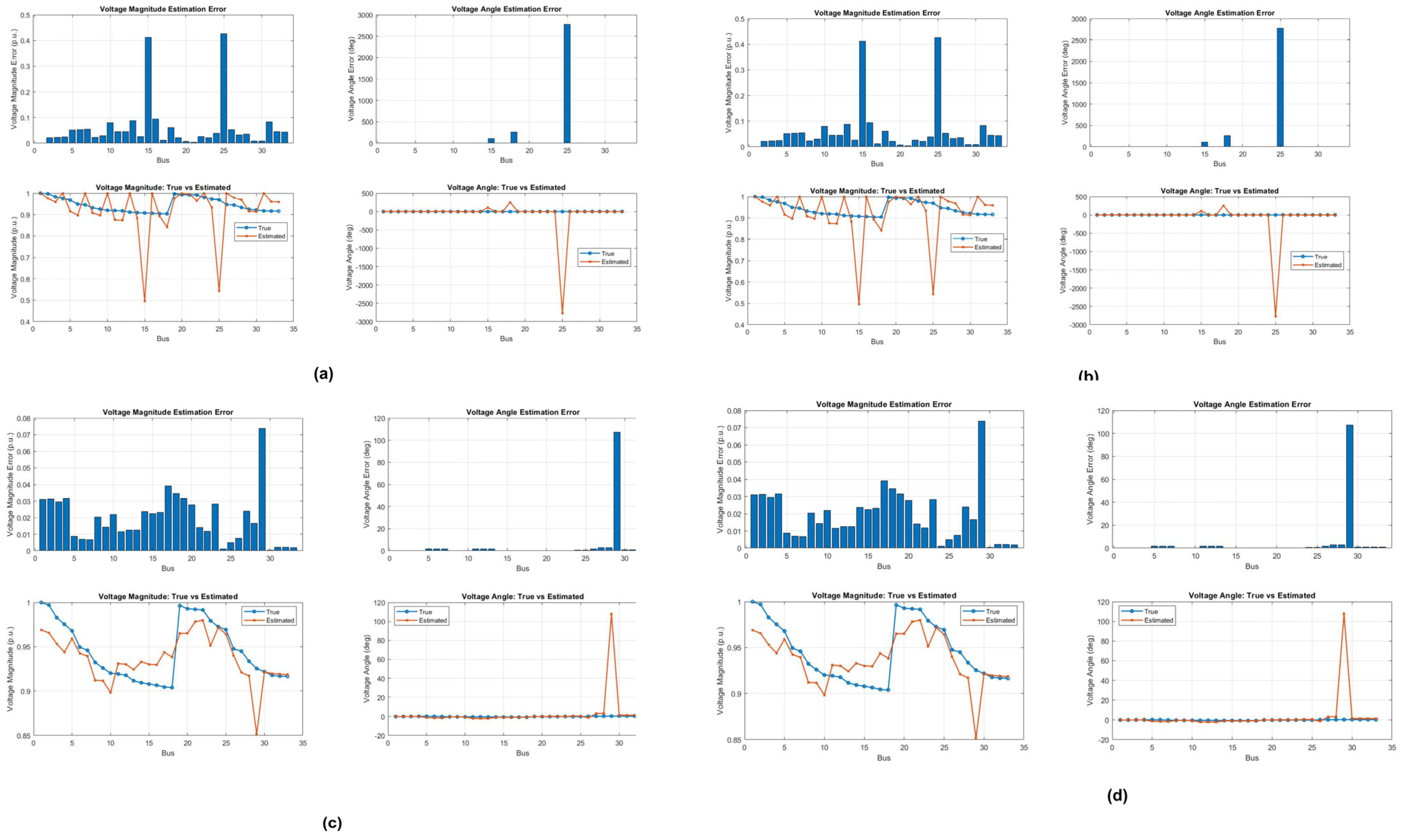 - After the placement, the WLS algorithm is employed for voltage estimation to ensure that strategically installed µ-PMUs measure the voltage estimation correctly for all case studies.