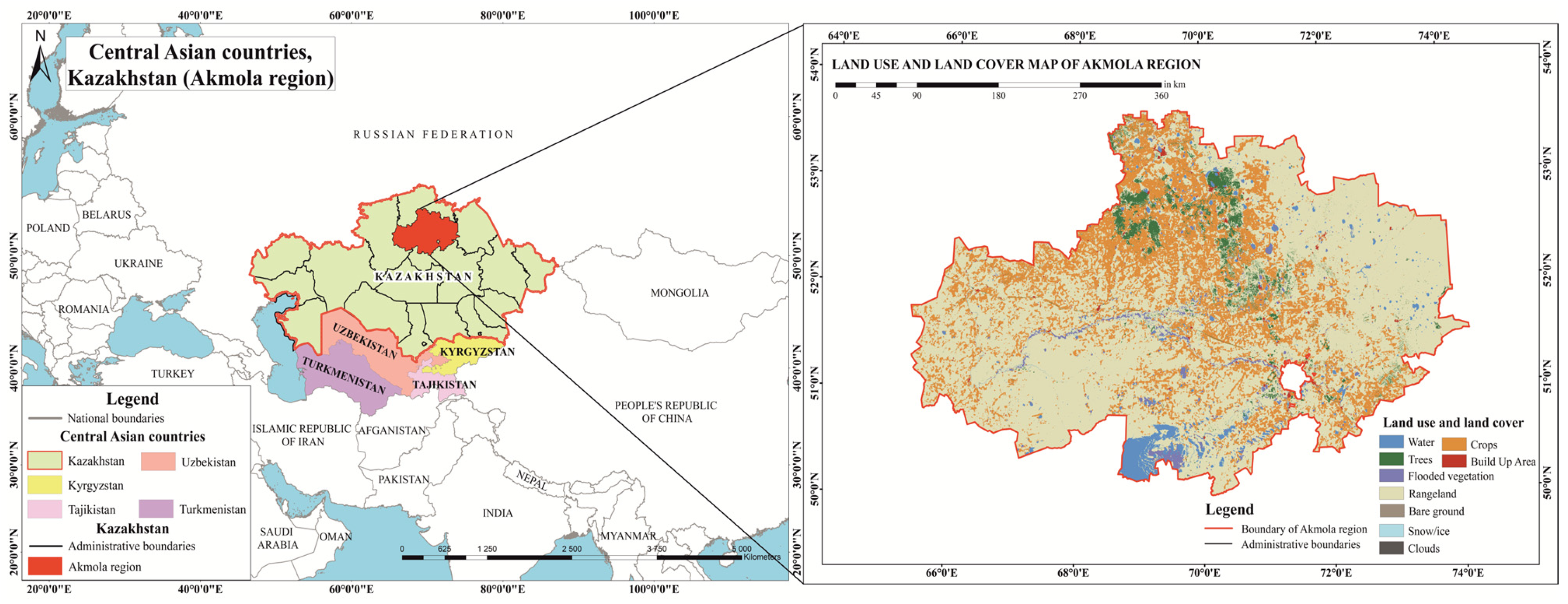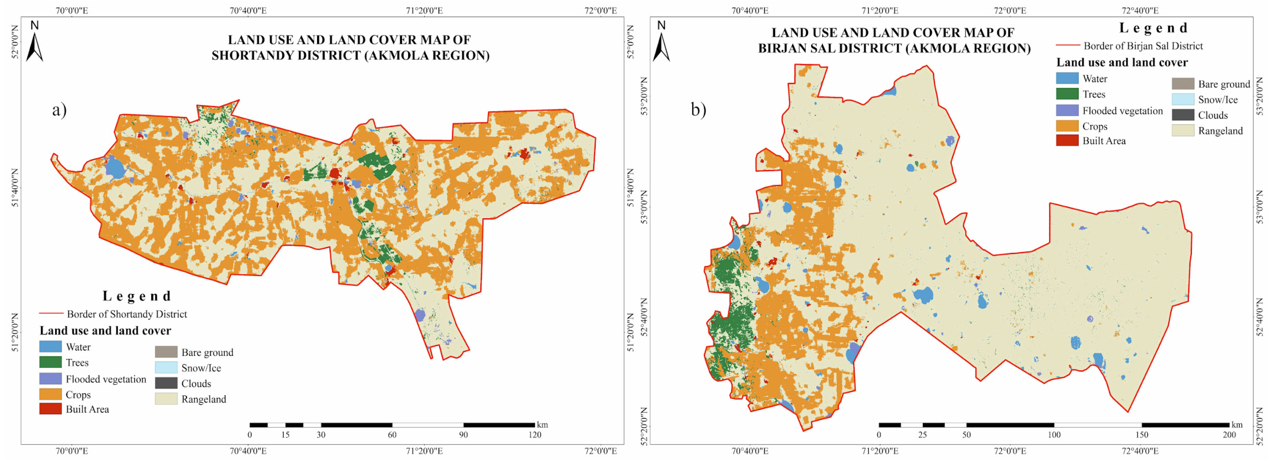 Appendix A. Land Use and Land Cover Maps of the Akmola Region