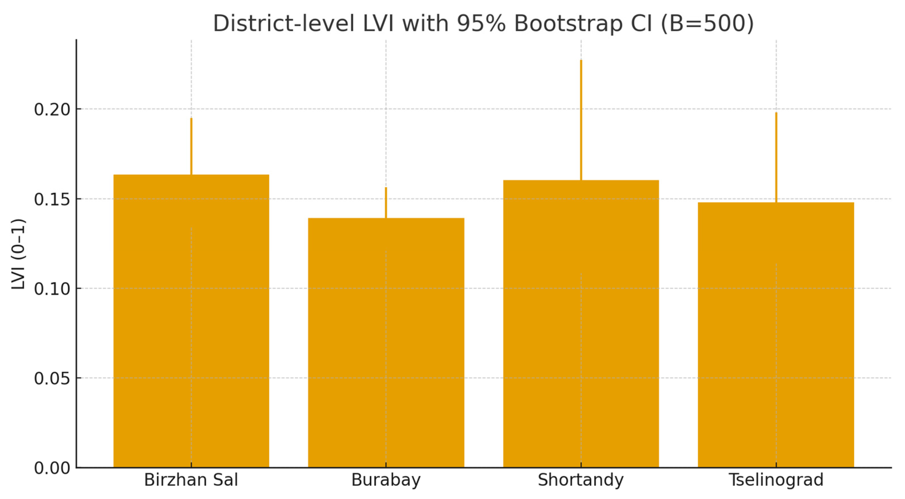 - Leave-one-indicator-out (LOIO): Recompute component and LVI scores excluding each indicator in turn.