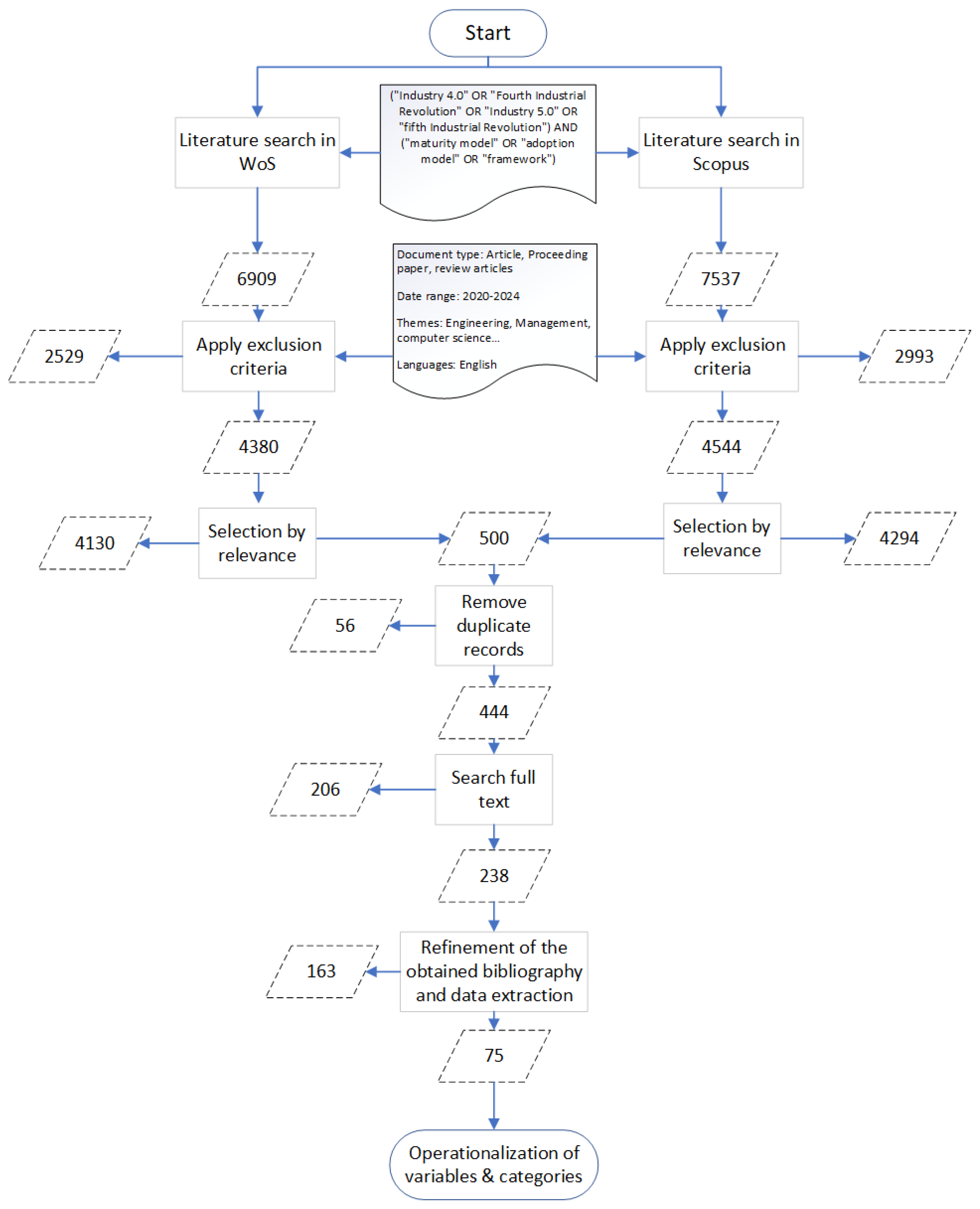 ("Industry 4.0"’ OR "Fourth Industrial Revolution"’ OR "Industry 5.0"’ OR "Fifth Industrial Revolution"’) AND ("maturity model"’ OR "adoption model"’ OR "‘framework"’)