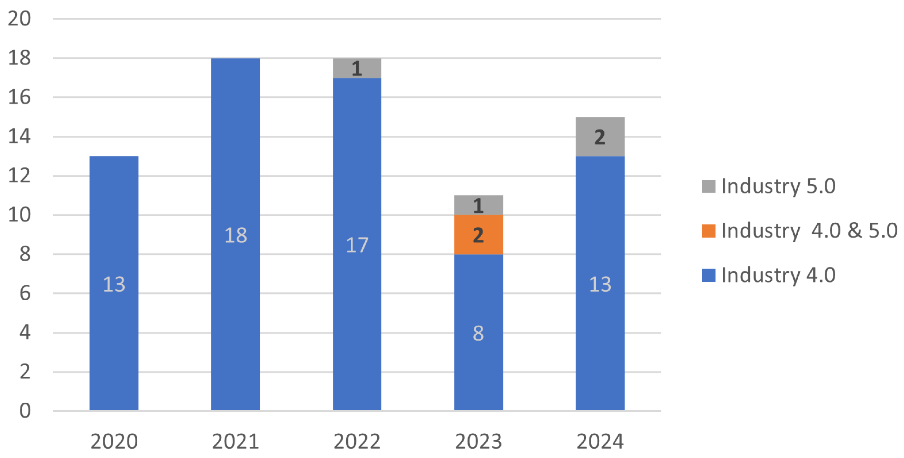 - If explicit indicators on people, sustainability or resilience are present, the model is coded as I5.0, even if the article only refers to Industry 4.0.