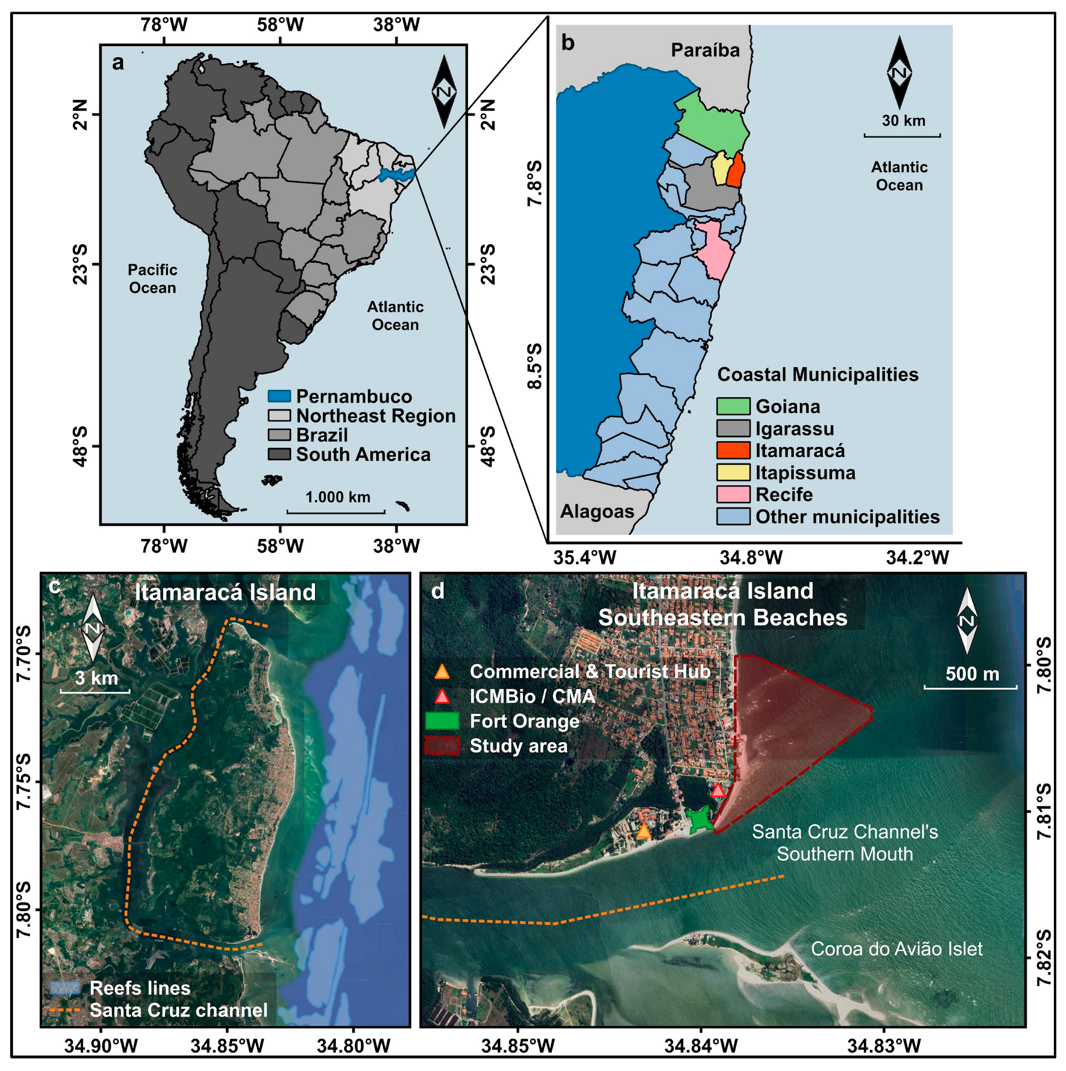 - Oliveira, A.L.N.; Santos, J.L. A Ilha de Itamaracá e a organização da defesa no período colonial (séculos XVI e XVII): Contribuição para a história do litoral norte de Pernambuco, Brasil. Cad. Do LEPAARO 2014, XI, 21. [Google Scholar] [CrossRef]