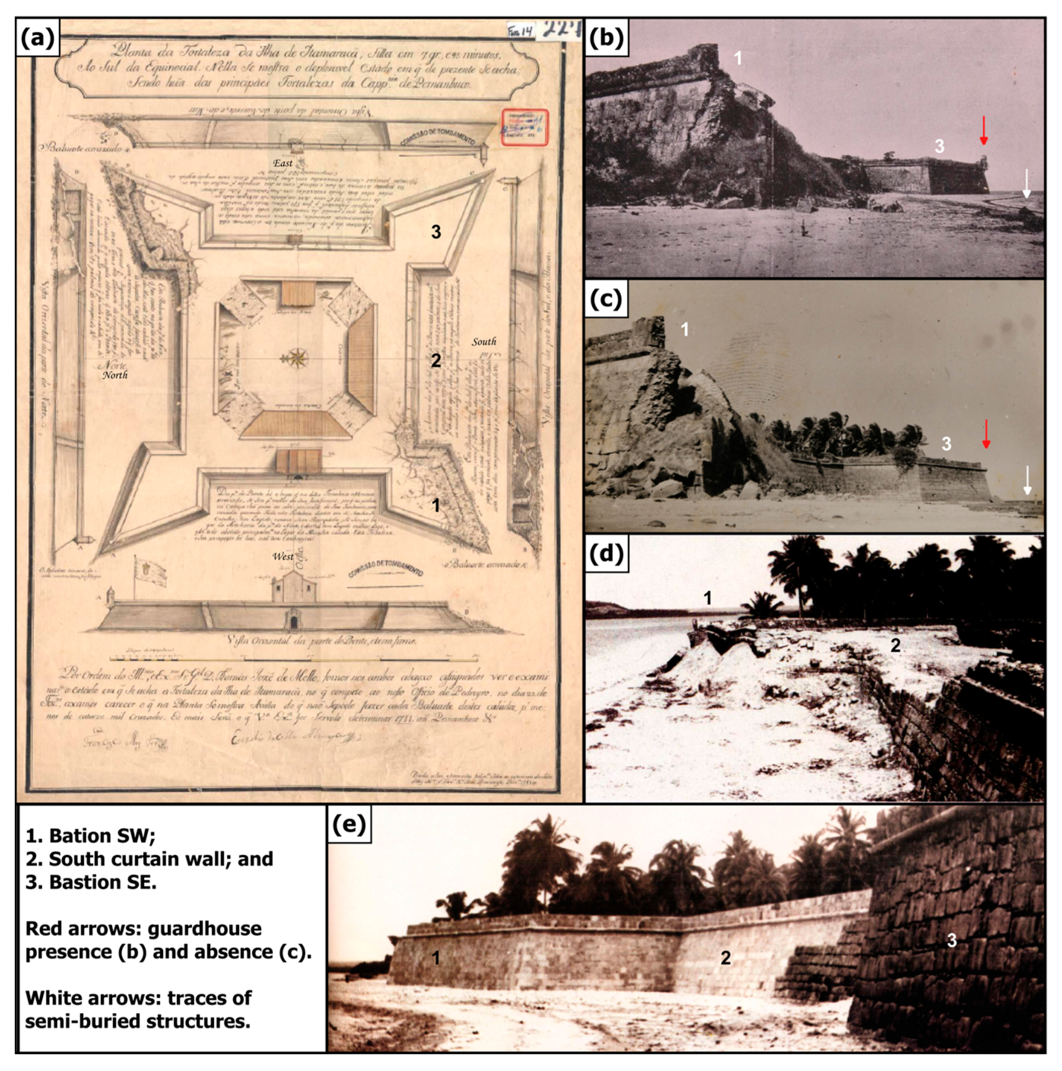 - Barthel, S.G.A. Arqueologia de uma Fortificação: O Forte Orange e a Fortaleza de Santa Cruz em Itamaracá, Pernambuco. Master’s Thesis, Center for Philosophy and Human Sciences, Federal University of Pernambuco, Recife, Brazil, 2007; 168p. [Google Scholar]