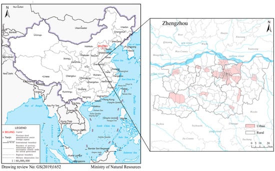 Zhengzhou City (112°42′–114°14′ E, 34°16′–34°58′ N), which experiences a temperate continental monsoon climate, serves as the capital of Henan Province in central China. The administrative area covers approximately 7.567 × 105 hm2 and includes 86 urban units and 93 rural units (Figure 1). As a typical representative of rapid urbanization in developing countries, Zhengzhou exhibits a distinct urban–rural dual structure and marked spatial heterogeneity. This study takes Zhengzhou as a case study, focusing on differences in ES supply and demand between its urban and rural units. A systematic analysis is conducted across four dimensions—potential supply, actual supply, RHN, and effective supply—to provide references for differentiated urban–rural management.