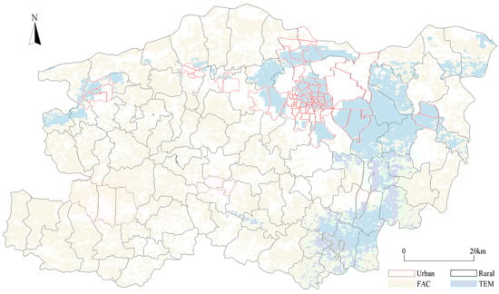 Based on the state selection results for FAC = 3 or TEM = 3 (Figure 10), a significant proportion of the area in Zhengzhou achieves optimal FAC. The regions with optimal FAC are primarily located in the western and surrounding rural areas, while urban areas show virtually no regions achieving the optimal state for FAC. Conversely, the areas with optimal TEM are predominantly concentrated in the eastern part of Zhengzhou, with a few small regions in the northeast and southeast also exhibiting the optimal state.
