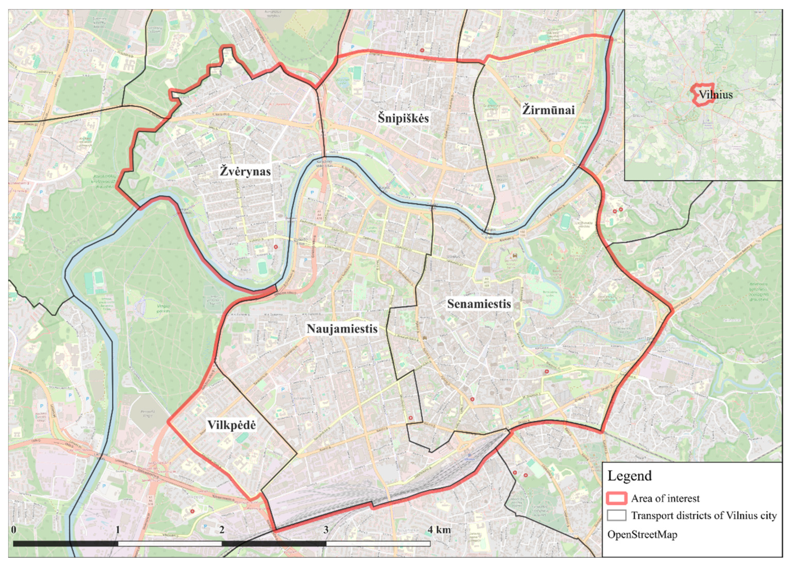 13]. To ensure consistency and account for time constraints, the case study was limited to the central part of Vilnius, which is referred to as the Vilnius case study (see