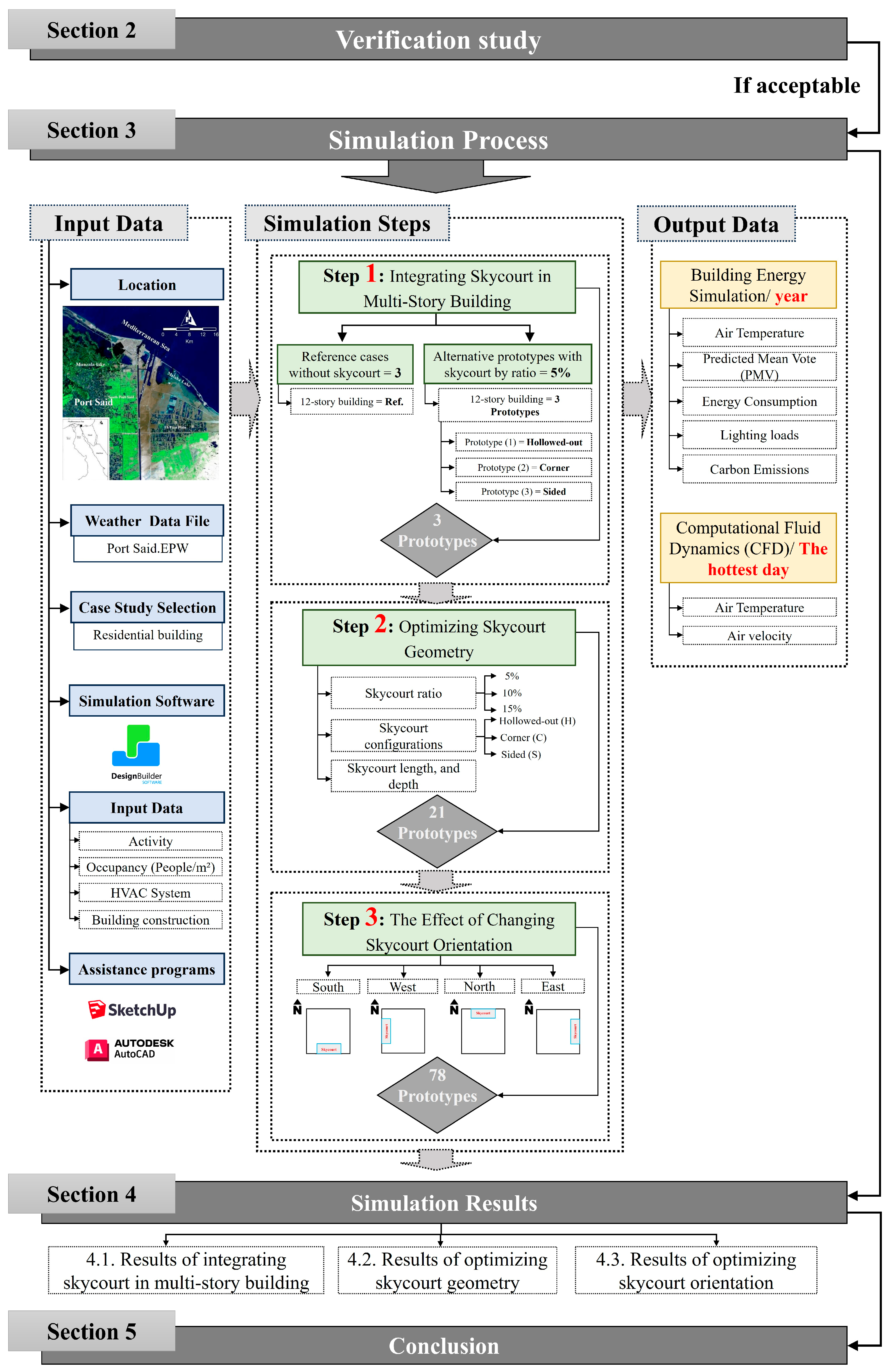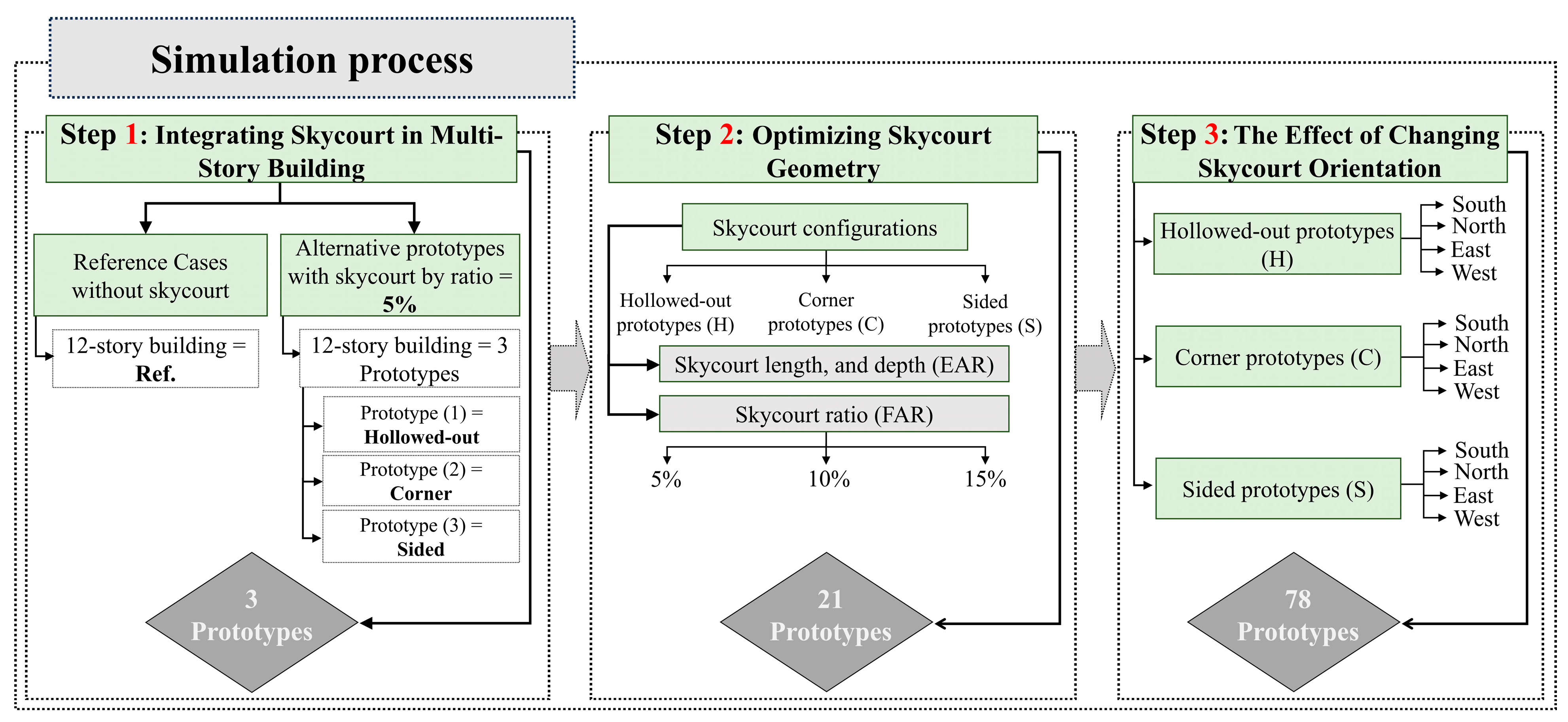 Megahed, N.A.; Ali, R.A.; Shahda, M.M.; Hassan, A.M. Integrating Skycourts into Multi-Story Buildings for Enhancing Environmental Performance: A Case Study of a Residential Building in a Hot-Humid Climate. Sustainability 2025, 17, 11061. https://doi.org/10.3390/su172411061