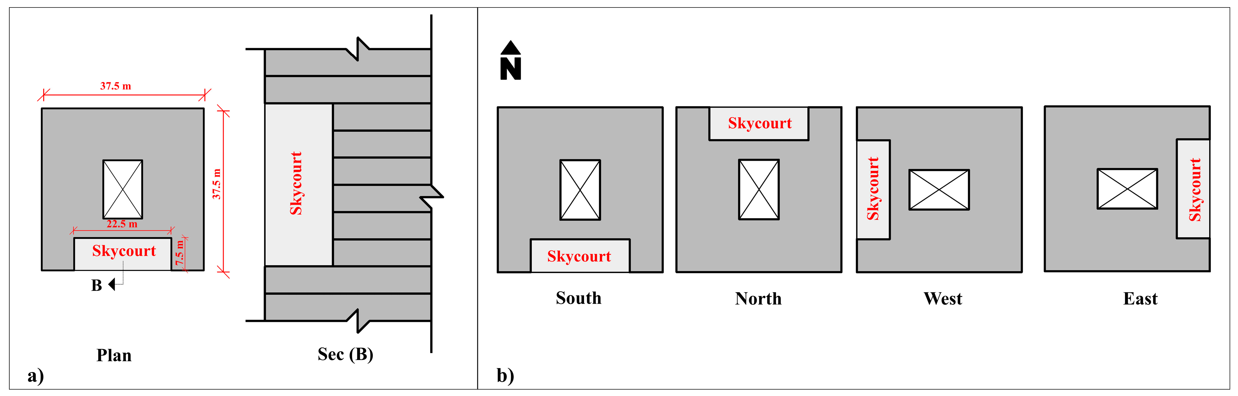 3.3.1. Step One: Integrating a Skycourt in a Multi-Story Building
