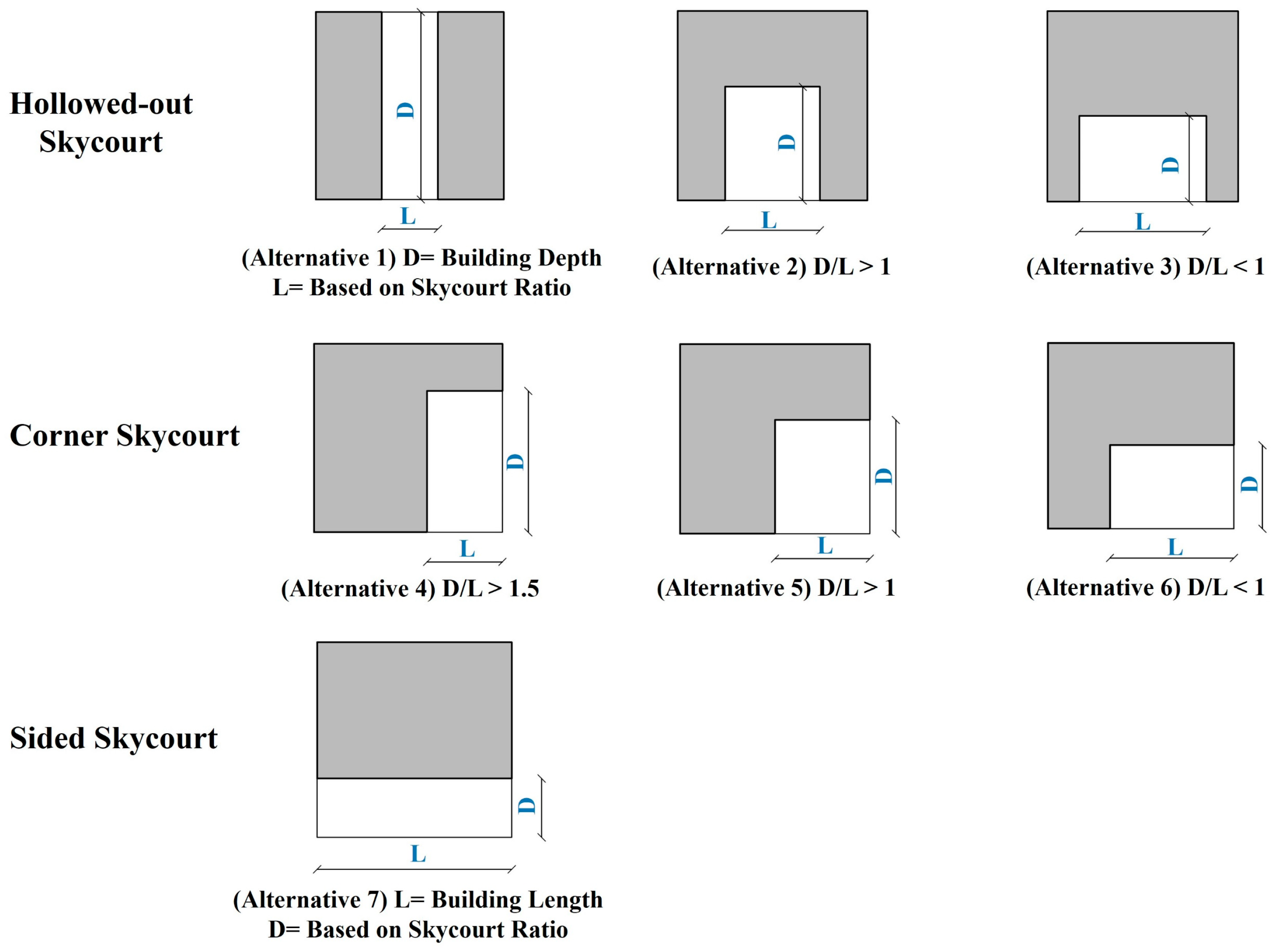 | Prototype (1) Hollowed-Out | Prototype (2) Corner | Prototype (3) Sided | Skycourt Area | Skycourt Volume | |