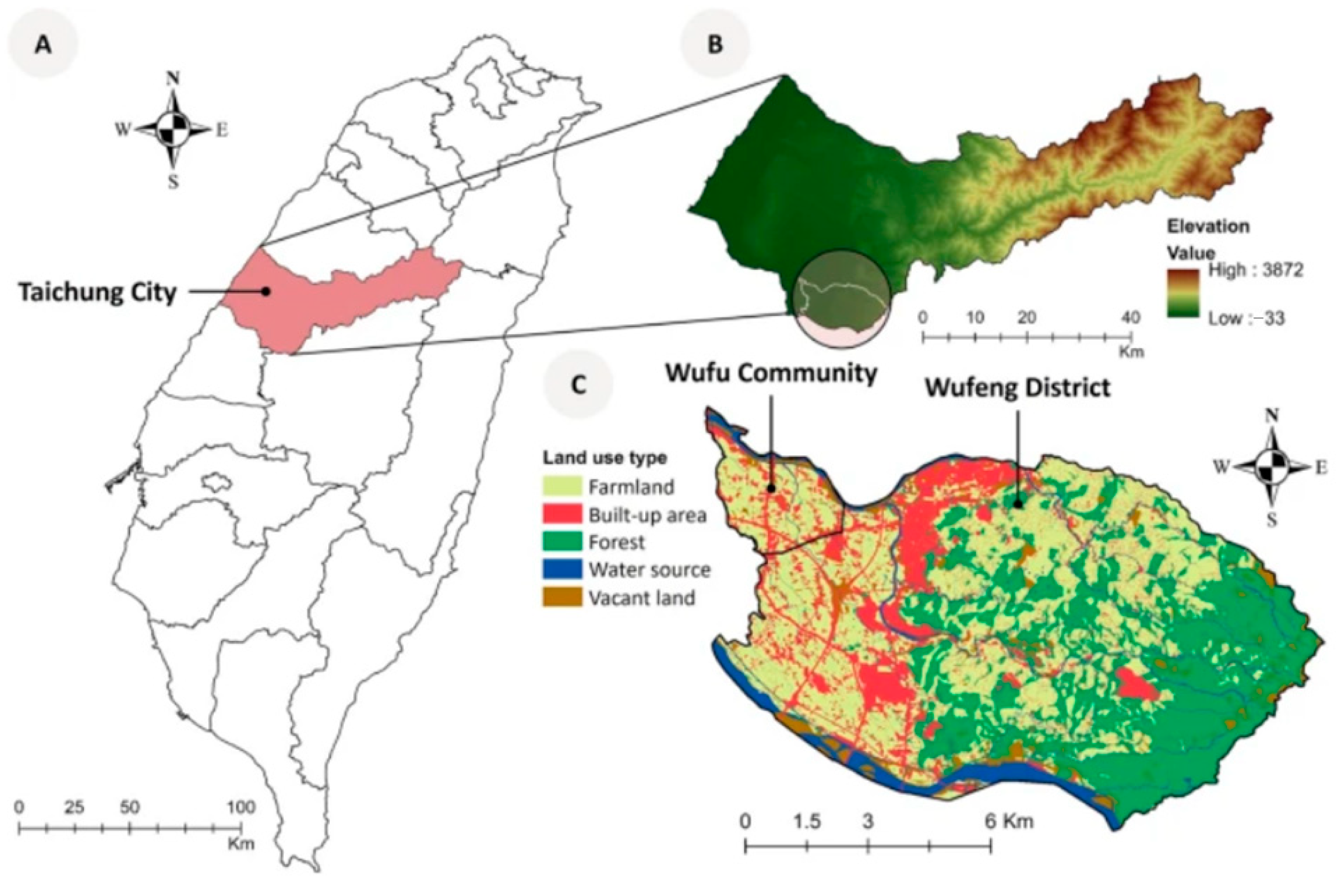 - Taichung City Wufeng District Office; Accounting Office. Agricultural Development Overview of Wufeng District, Taichung City, 2017; Taichung City Wufeng District Office: Taichung, Taiwan, 2018. (In Chinese)