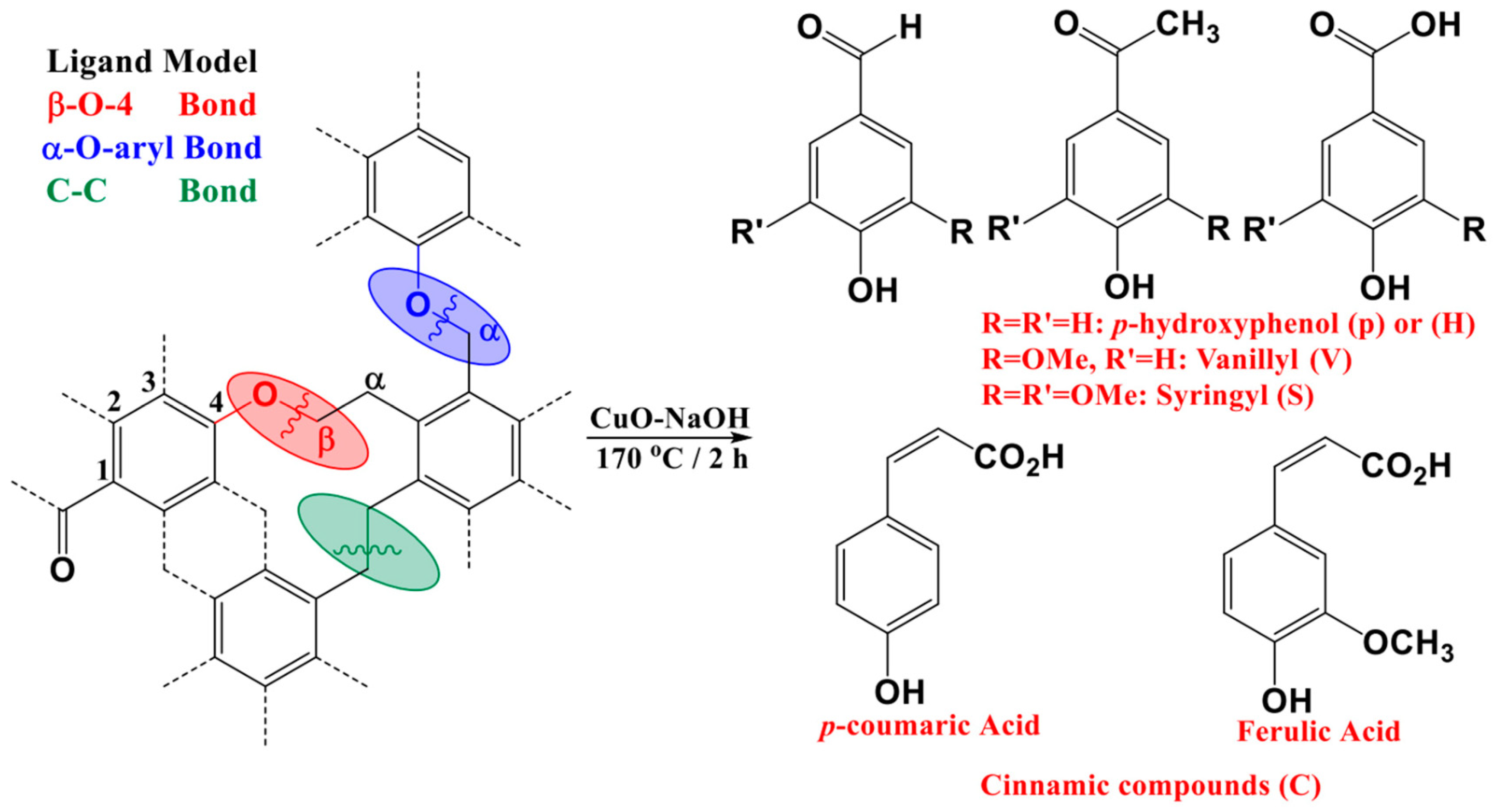 16]. This discrepancy may be attributed to differences in the mechanistic approaches between the two molecular analysis techniques: CuO-NaOH oxidation and lipid extraction. The first involves the cleavage of C-C and C-O bonds in lignin through high-temperature redox reactions (170 °C; [