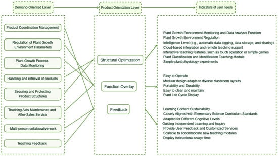 Based on the in-depth analysis of user behavior overlapping across different scenarios, combined with the KANO model classification of user demand attributes and Better–Worse coefficient analysis, to meet user demand for Plant Growth Cycle Science Teaching Aid, incorporating real plants into classroom settings can create an immersive, highly interactive natural plant learning experience for children. Leveraging innovative technology can precisely optimize plants’ basic survival needs, transforming elusive growth processes into quantifiable data for intuitive observation and comparison. Furthermore, the ease of operation, portability, and durability of the teaching aids are key areas requiring optimization in product structure and material selection. The sustainability of educational content and its adaptability to varying cognitive levels are crucial elements for cultivating users’ environmental literacy. This study will discuss specific optimization strategies covering functional configuration, structural optimization, learning content selection, teaching interaction, and the construction and outlook of the teaching system.