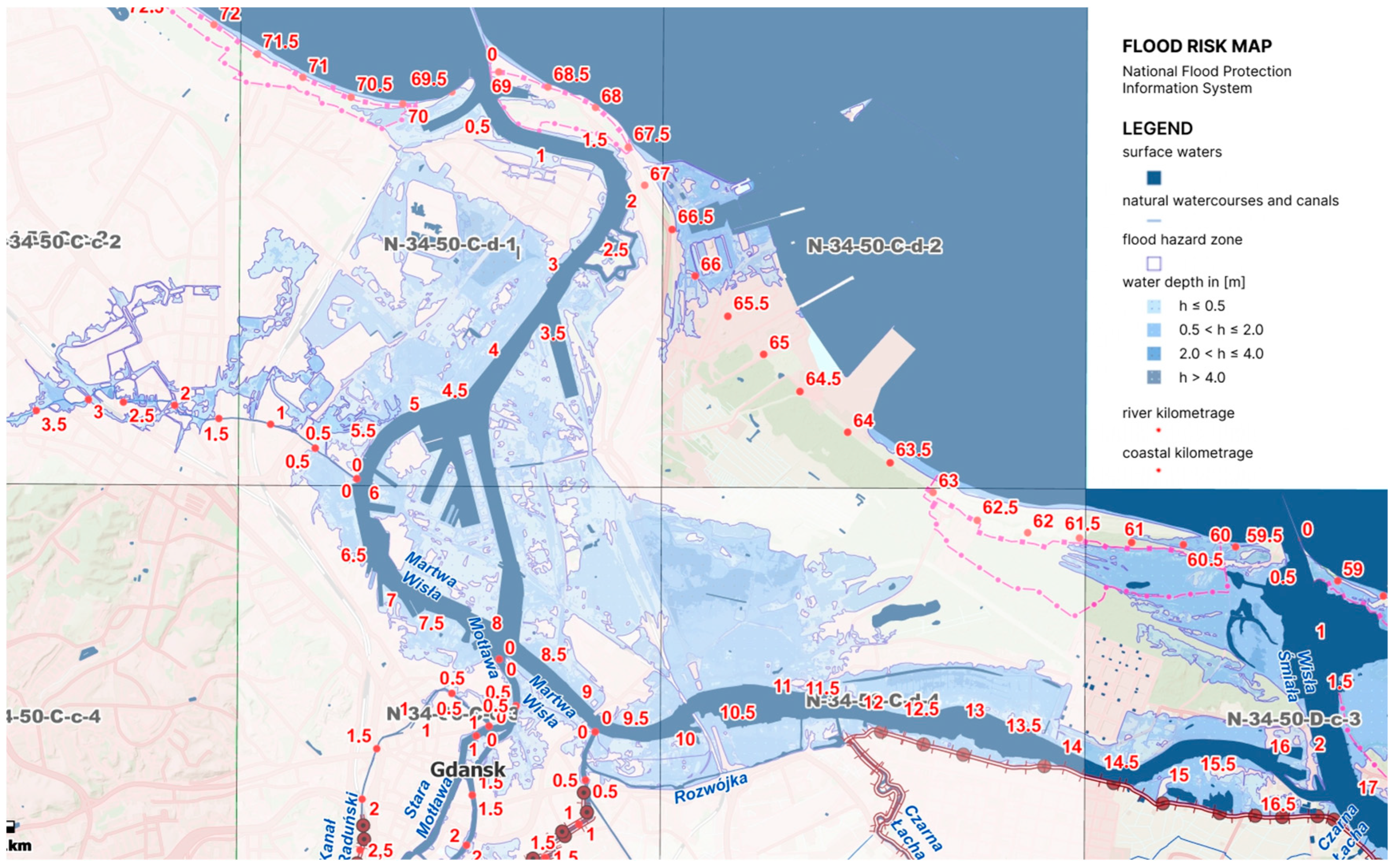 - Olszynka and Orunia districts: Situated in a polder landscape, these areas are closely tied to Gdańsk’s hydraulic heritage. Their specific hydrological conditions require flood-resilient planning strategies and climate-adaptive architecture. At the same time, the presence of open green spaces offers a rare potential for sustainable, low-density development integrated with nature-based solutions.