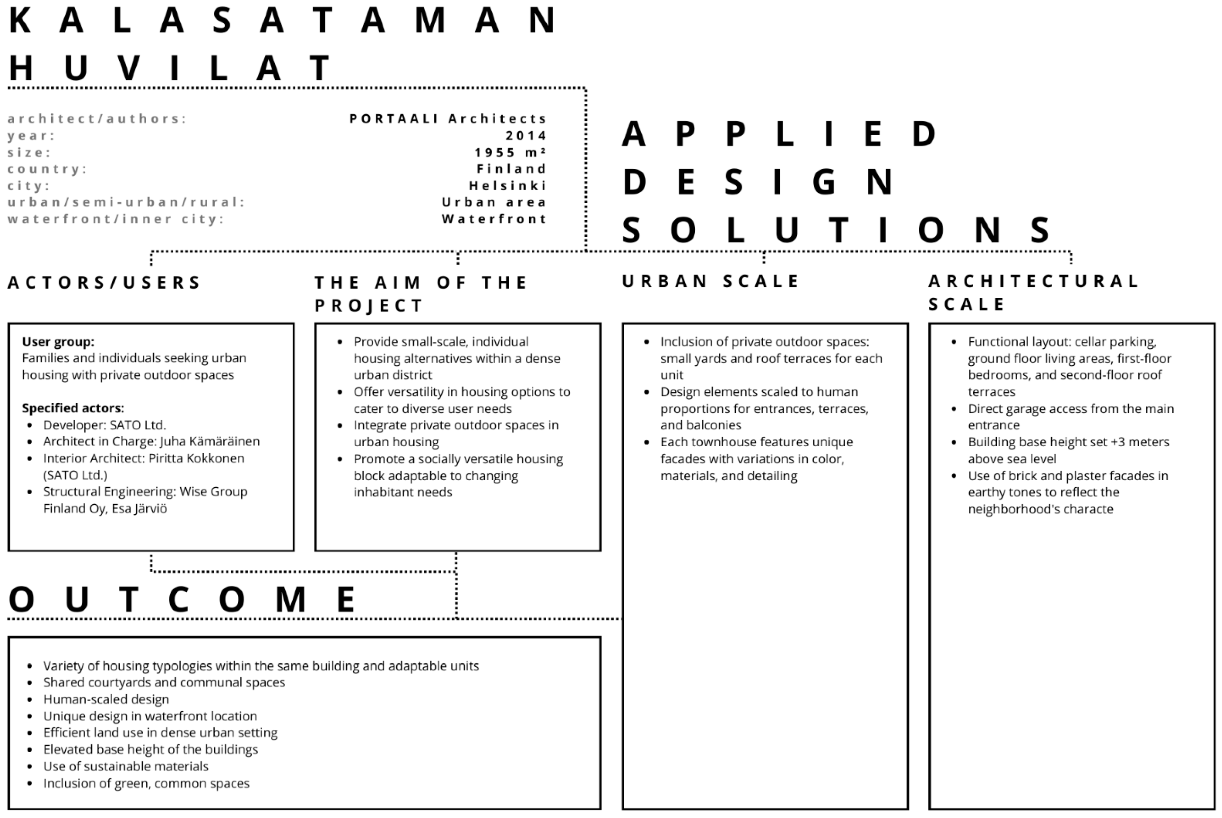 - Kalasataman Huvilat (Helsinki, Finland): A compact, elevated housing development emphasizing environmental performance and community-oriented design.