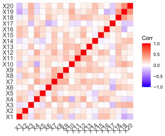 Figure 1 presents the correlation matrix between the 20 questionnaire items, intended to identify potential redundancies and ensure the integrity of the statistical model. This visualization allows us to observe which items show excessively high correlations with each other, which could indicate that they are assessing similar or repetitive constructs, generating risks of multicollinearity.