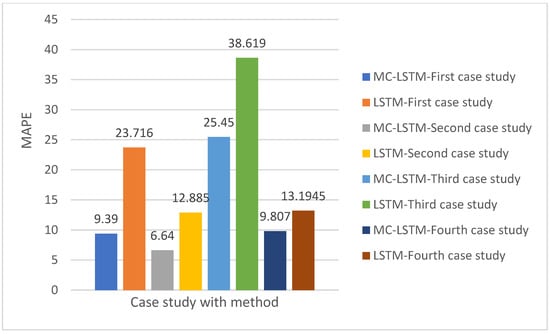 The following paragraphs present a concise analysis of the hybrid model’s performance, as depicted in Figure 9, Figure 10 and Figure 11, which illustrate its sensitivity to data perturbations across four distinct case studies. The evaluation utilizes MAE, RMSE, and MAPE as key performance indicators.