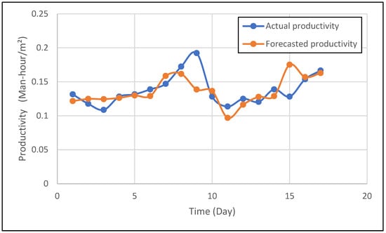 Labor productivity is a crucial aspect in the successful delivery of projects within the construction industry, directly impacting project schedules, cost adherence, and overall profitability. Beyond economic considerations, labor productivity plays a pivotal role in advancing construction sustainability. Higher productivity reduces material waste through better planning, minimizes energy consumption by shortening project durations, optimizes resource allocation to prevent overuse, and decreases the carbon footprint associated with extended construction activities. The construction sector accounts for approximately 39% of global carbon emissions and consumes significant natural resources, making productivity improvements a critical pathway toward sustainable development [1]. Its critical role is highlighted by the substantial portion of project expenses attributed to labor. Industry data consistently shows that labor costs typically account for 20% to 40% of total construction project costs [2,3]. Such high labor costs amplify the consequences of productivity decline, which has persisted over recent decades. For instance, U.S. construction labor productivity diminished by over 30% between 1970 and [4]. This stagnation has been persistent, with the U.S. experiencing negative productivity growth in construction between 2000 and 2021 [5], underscoring a critical issue that requires advanced forecasting and management strategies.