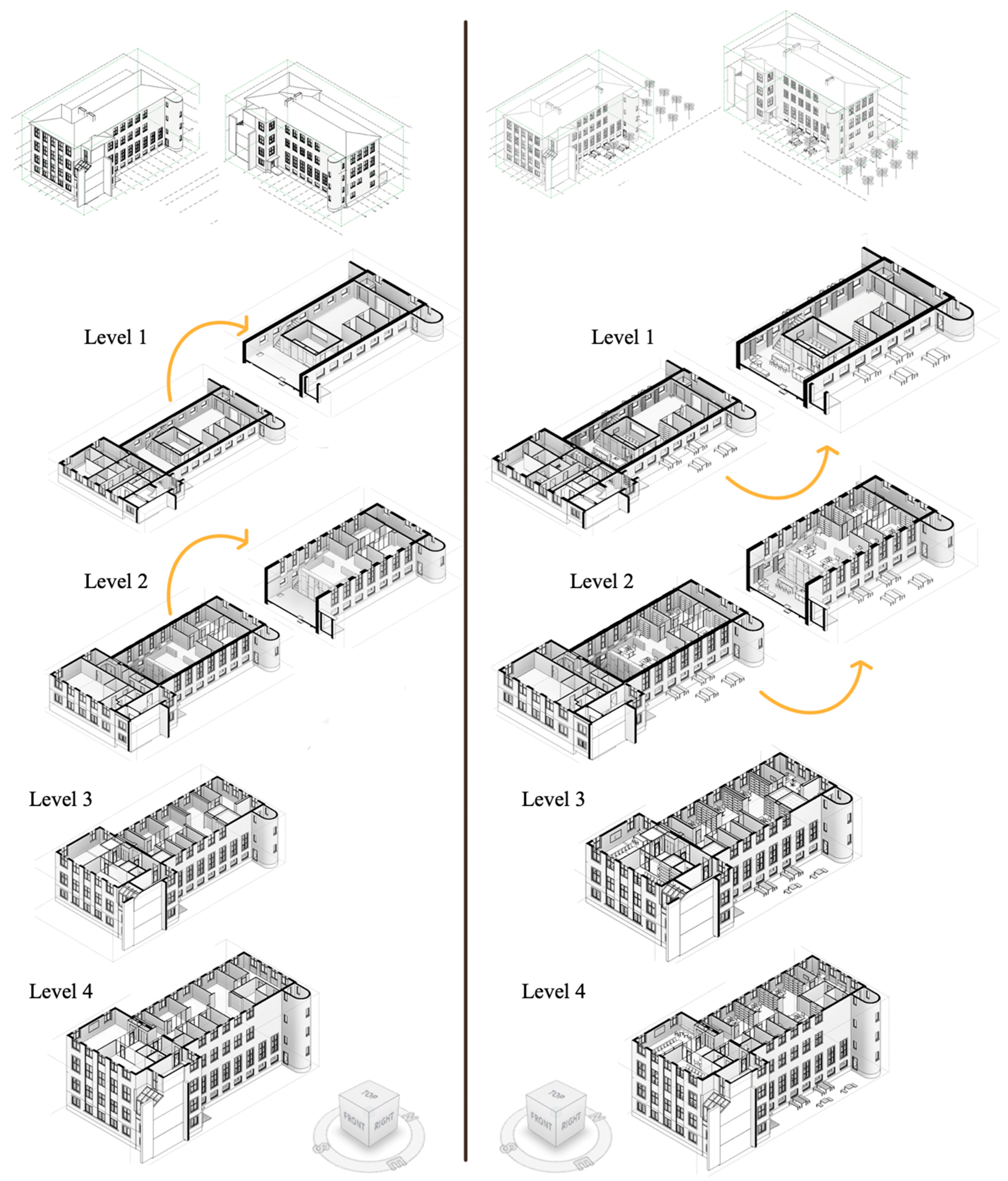 70]. The assessed scenarios for both worthy of preservation and listing protected buildings are limited by existing regulations that restrict the changes allowed during renovation or transformation.