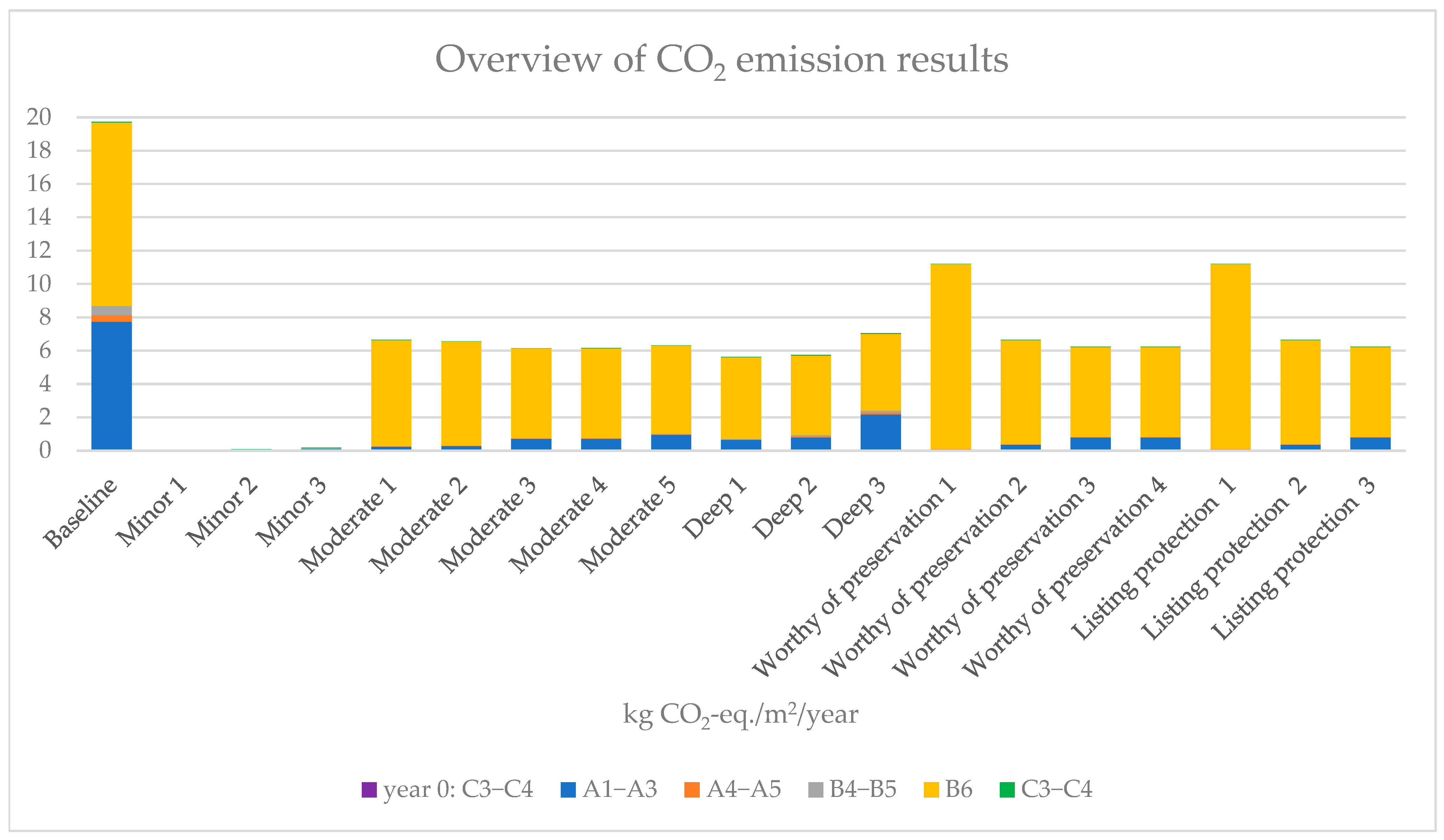 6.1. Energy and Overall CO2 Emissions of Renovation Depths