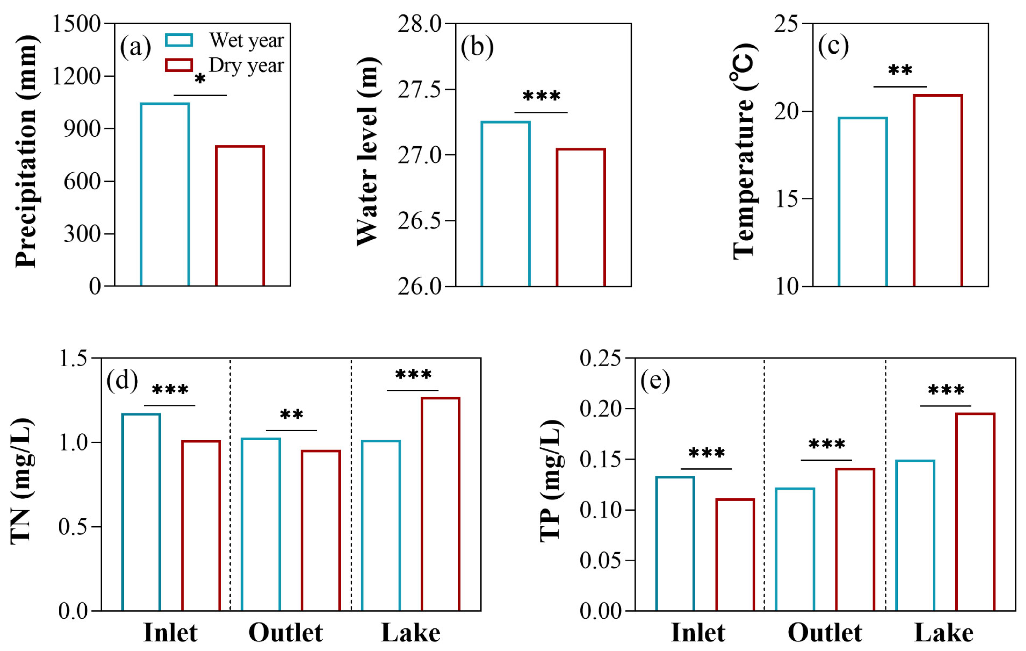 3.3. Dynamic Response of Lake Water Quality to Extreme Hydrological Years