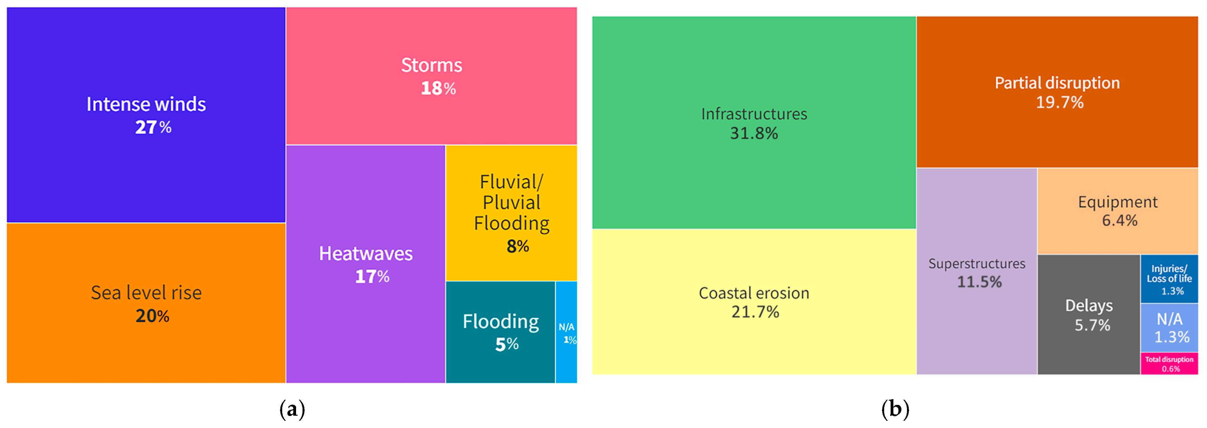 44]. Recently introduced tools propose the integration of both technical and governance dimensions to assess ports’ resilience to climate hazards [