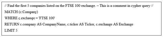 An example Cypher query is shown in Figure 2, and the textual output can be visualised as shown in Figure 3 or can also be visualised as a network graph of interconnected nodes.