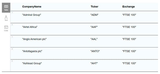 The process begins by constructing a “Company Registry” master dataset by scraping publicly available Wikipedia index pages for the FTSE 100, FTSE 250, and ASX 200, yielding a dataset of 550 firms. Each entry includes the company name, stock ticker, and exchange; a sample is presented in Table 1.