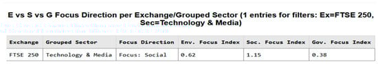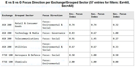 A hybrid approach was used. Initially, a Bag-of-Words (BoW) technique with custom keyword lists tailored to ESG themes was developed for the Bag-of-Words component to ensure initial relevance to the domains of Environmental, Social, and Governance categories to provide a baseline classification. This was augmented by a Zero-Shot Classification model (‘facebook/bart-large-mnli’) leveraging Natural Language Inference (NLI) to predict the ESG domain without task-specific training data. A sample of the processed data is shown in Table 4 below.