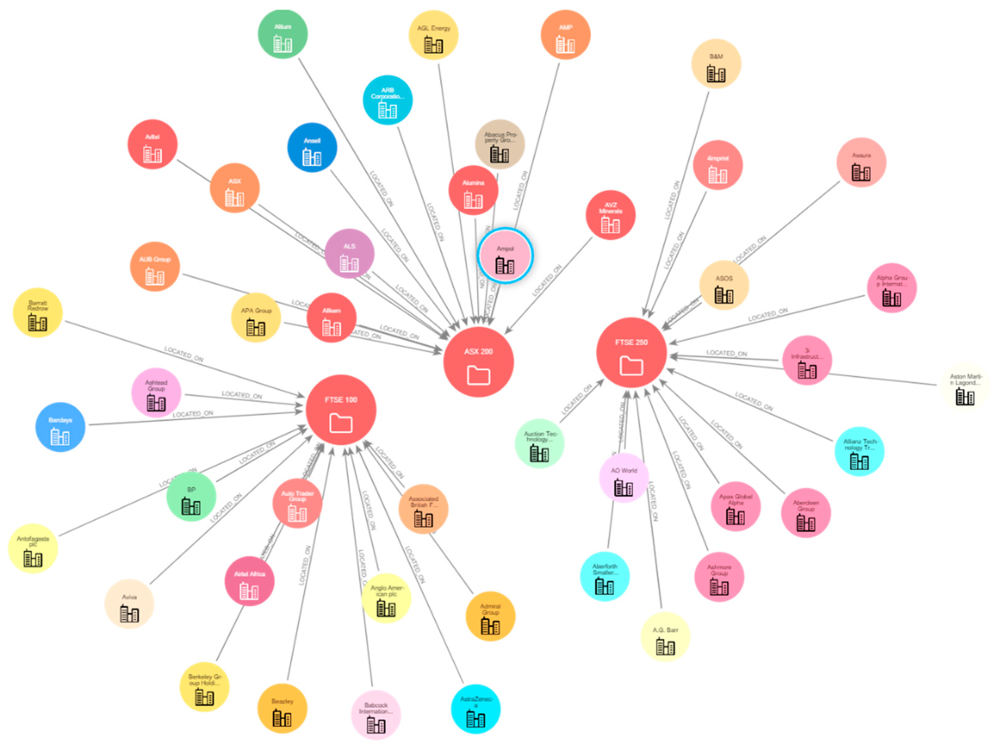 NodeGrouped SectorNormalised Sector (string, unique)Represents a grouping of sectors to ease relating the sectors that closely align with a broader one, to summarise how major market sectors relate to the other nodes.