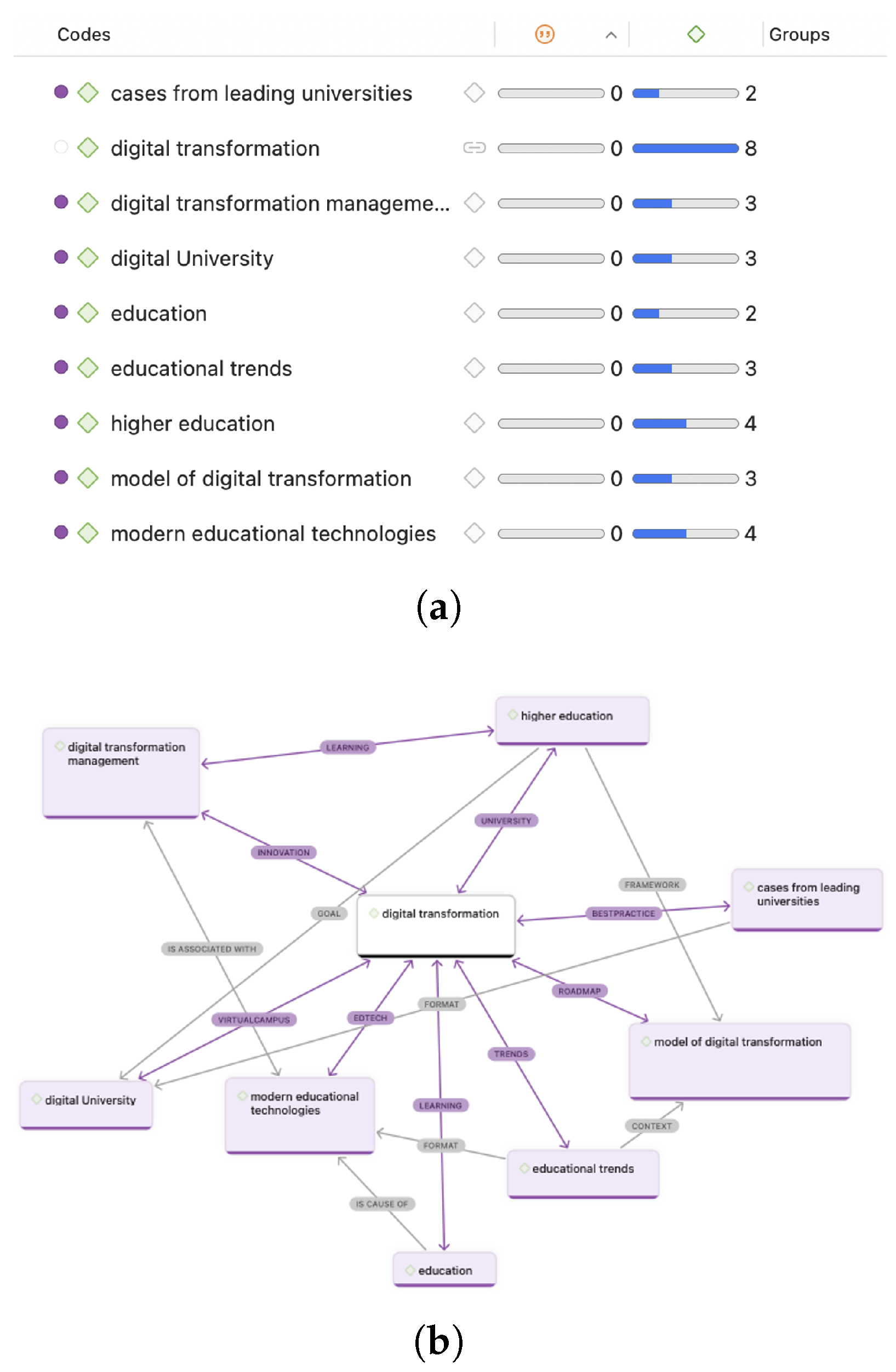 Figure 3 directly visualizes how the individual elements of the coding scheme, through their interaction, form an integrated and empirically based model of digital transformation in higher education.