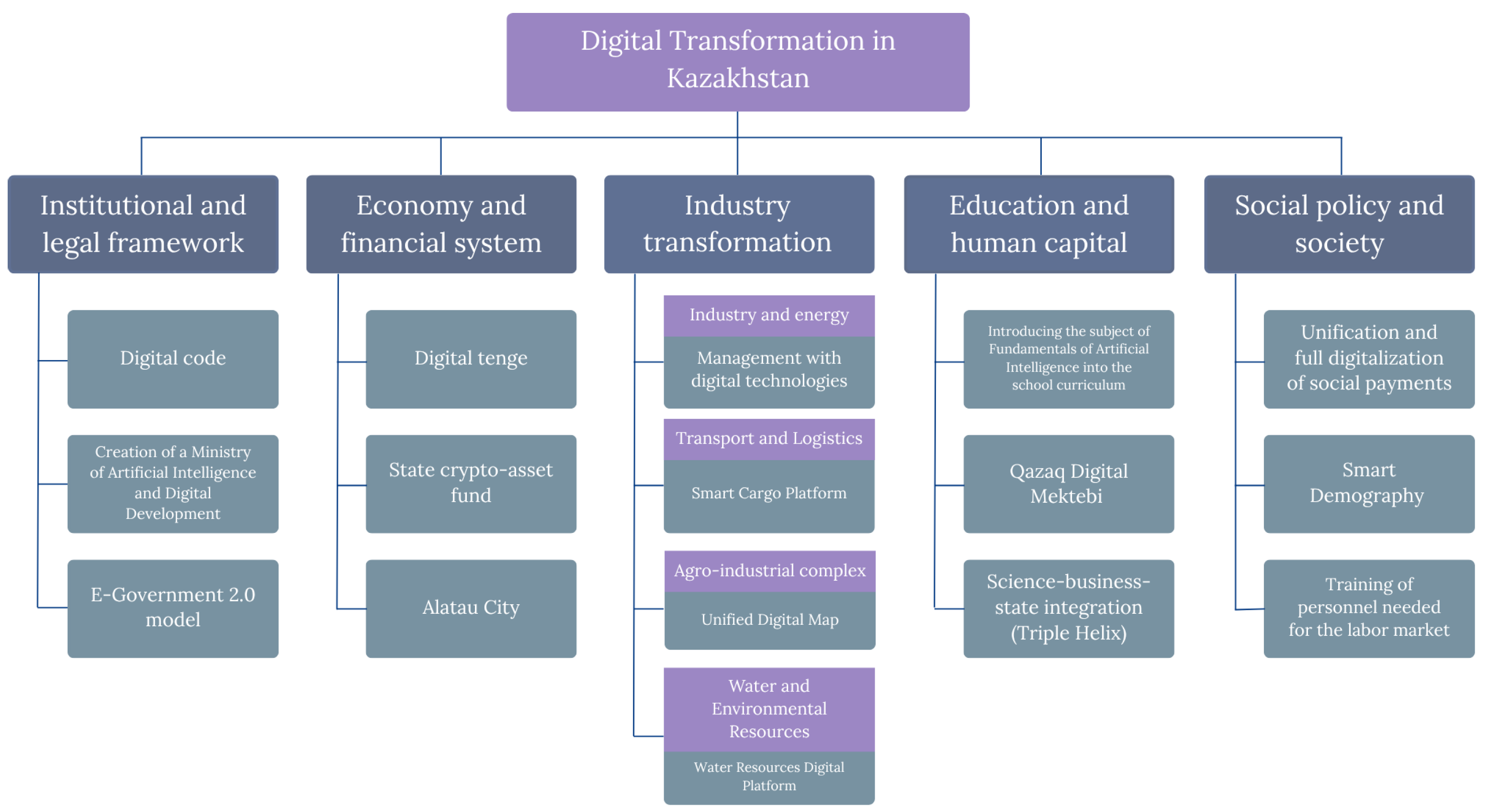 In general, the success of digital transformation is based on a combination of infrastructural preparation, the formation of digital management systems, pedagogical modernization, the introduction of innovative technologies and the systematic development of human capital. The main relevant strategic directions for Kazakhstan are:
