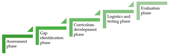 Phases of the Education Roadmap development process illustrating the sequential stages from assessment to evaluation within the CE education framework.