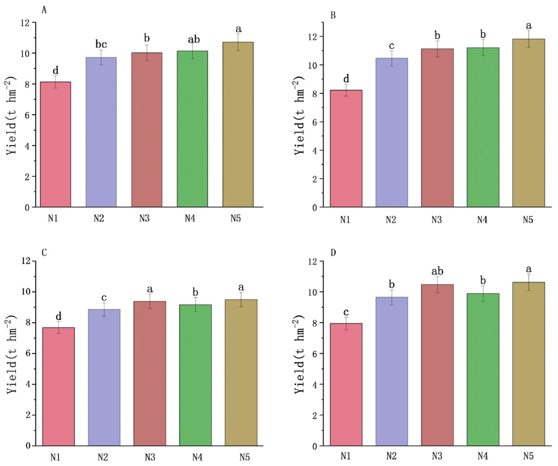 | Shendao 11 | N1 | 9.40b | 15.63a | 6.67c | 18.57a |