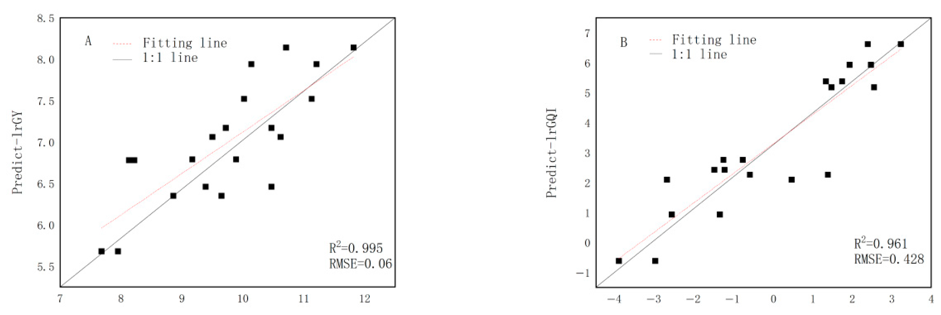 3.3. Evaluation of Agro-Physiological Indices of Rice Yield and Quality Based on the Regression Model
