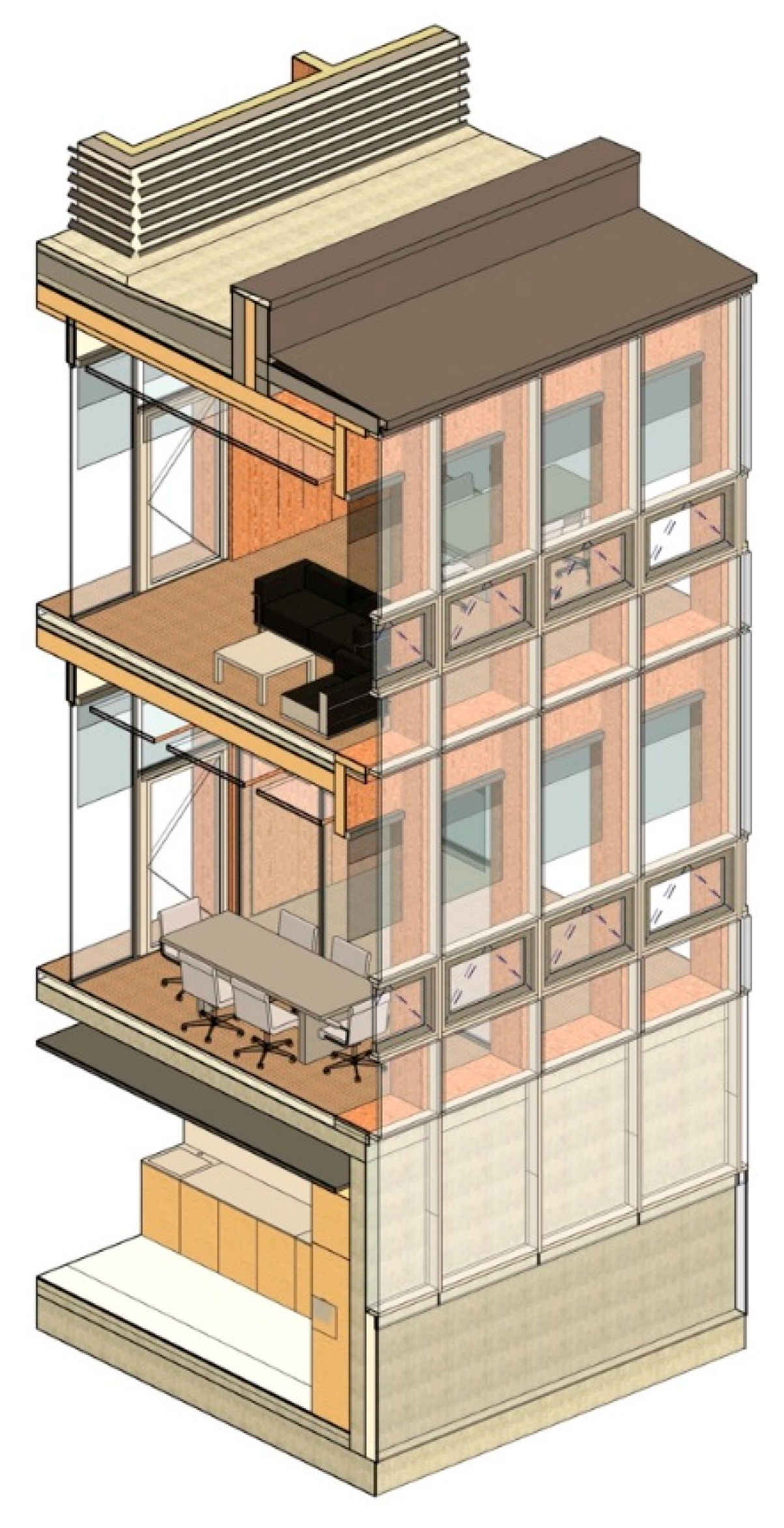 The following assumptions were made to analyze the embodied carbon footprint for an example office building.