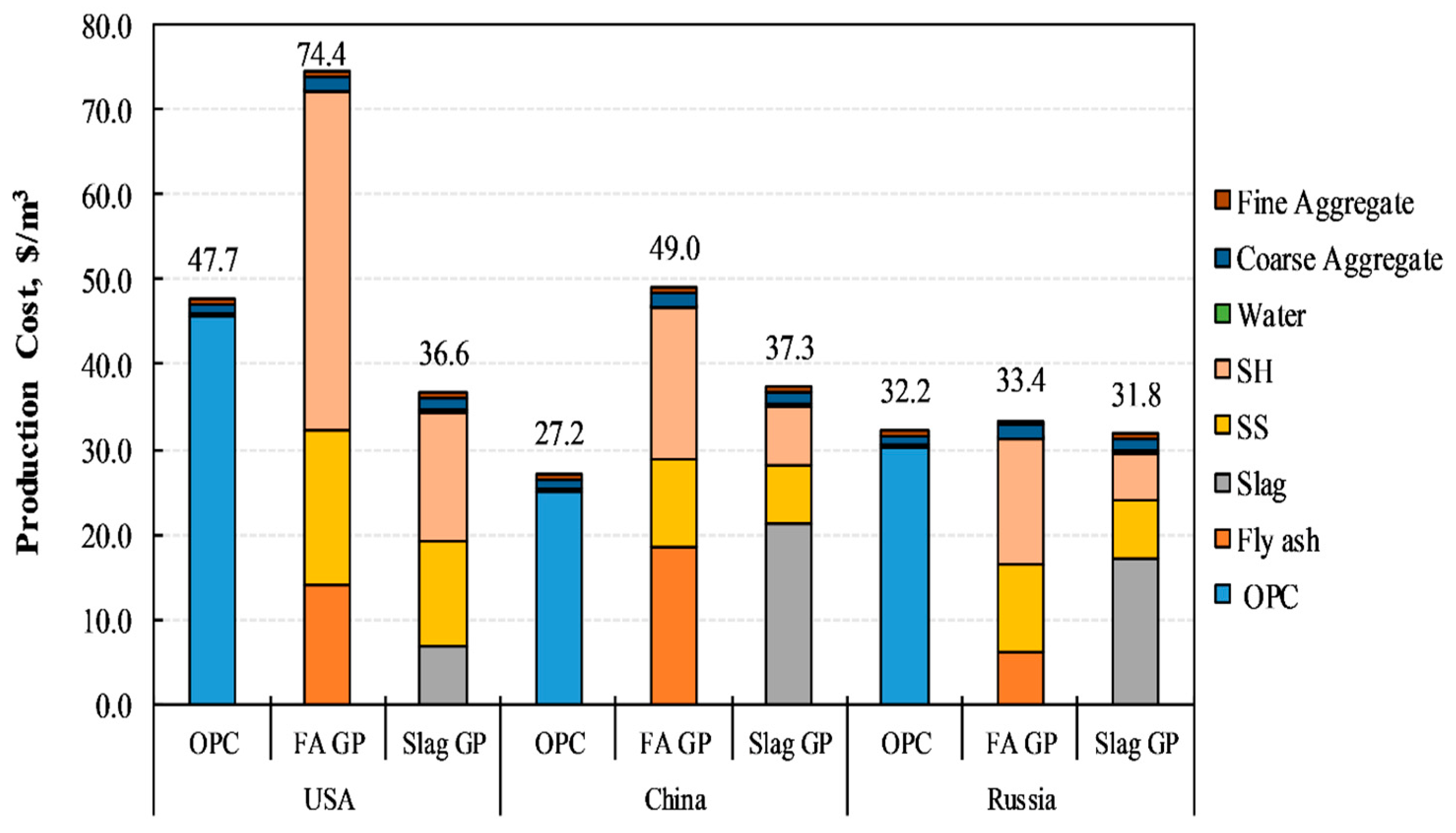 | FA-based GPC cement Price/Ton (USD) [357] | 100 |