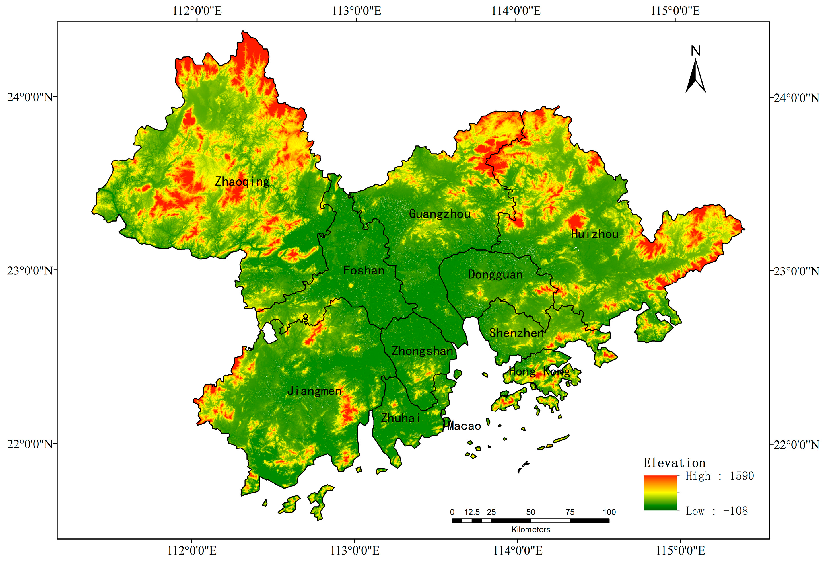 - Li, Q.; Wu, J.; Su, Y.; Zhang, C.; Wu, X.; Wen, X.; Huang, G.; Deng, Y.; Raffaele, L.; Chen, X. Estimating ecological sustainability in the Guangdong–Hong Kong–Macao Greater Bay Area, China: Retrospective analysis and prospective trajectories. J. Environ. Manag. 2022, 303, 114167. [Google Scholar] [CrossRef] [PubMed]
