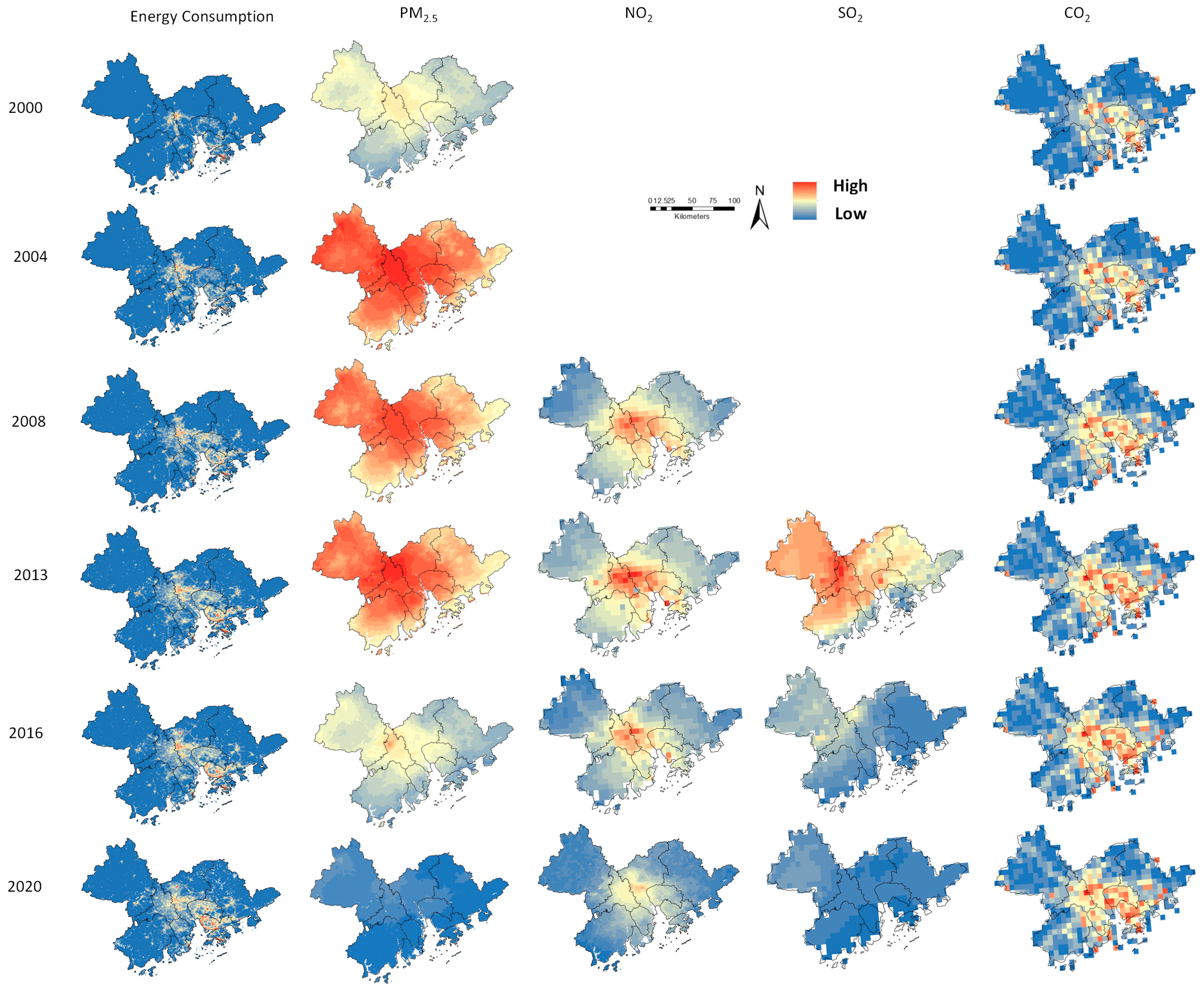 Chicago/Turabian StyleXu, Chao, Yanfei Lei, Xulong Liu, Yunpeng Wang, and Jie Xiao. 2025. "Temporo-Spatial Relationship Between Energy Consumption, Air Pollution and Carbon Emissions in the Guangdong–Hong Kong–Macao Greater Bay Area, China" Sustainability 17, no. 24: 11175. https://doi.org/10.3390/su172411175