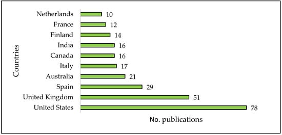 The geographical distribution of publishing outlets (Figure 3) indicates that the United States (78 publications) and the United Kingdom (51 publications) clearly dominate the field. This pattern underscores the pivotal role of these countries in shaping scholarly discourse and advancing research in this area. Both the US and the UK have a long tradition of research in management, organizational psychology, and leadership, with highly recognized universities and research centers (e.g., Harvard, MIT, Oxford, LSE). The US and the UK also tend to have more individualistic and distinctive organizational cultures for innovation, which is reflected in their research agendas. Furthermore, management practices of Anglo-Saxon origin have become a global reference since the post-war period through the globalization of multinational companies and business schools.