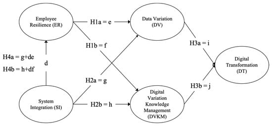 Economic activity can be driven by the forces, i.e., human, technology, and equipment. Referring to the four parts of DPKS in data quality management, employee resilience is the key factor of human driving force, and system integration can be understood as the technology driving force. Employee resilience (ER) and system integration (SI), to some extent, can reflect an organization’s human resources, technology, and processes. These two forces may have positive effects on the rest of the parts [43] and may function as parallel partners safeguarding data variation, continuously and cyclically enhancing data variation risk prevention and decision-making.