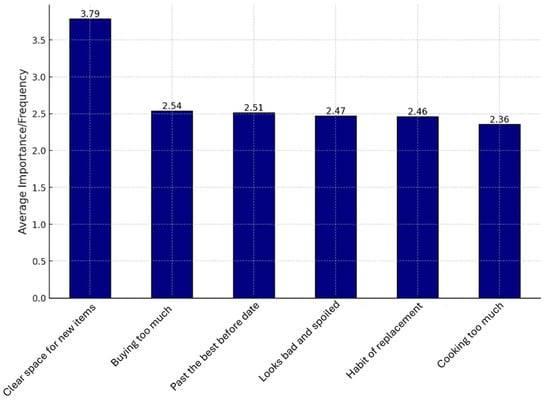 Another key factor contributing to food waste is expiration-based disposal, as indicated by the high frequency of respondents citing “past best-before date” as a reason for discarding food. This trend highlights a critical misunderstanding of food labeling practices, leading to premature disposal of still-edible products. Studies by [21] have demonstrated that consumers frequently misinterpret best-before dates as indicators of food safety rather than quality, a misunderstanding that disproportionately affects dairy products. Ref. [22] found that label modifications and public awareness campaigns led to a 27% reduction in dairy waste, emphasizing the importance of targeted educational interventions.
