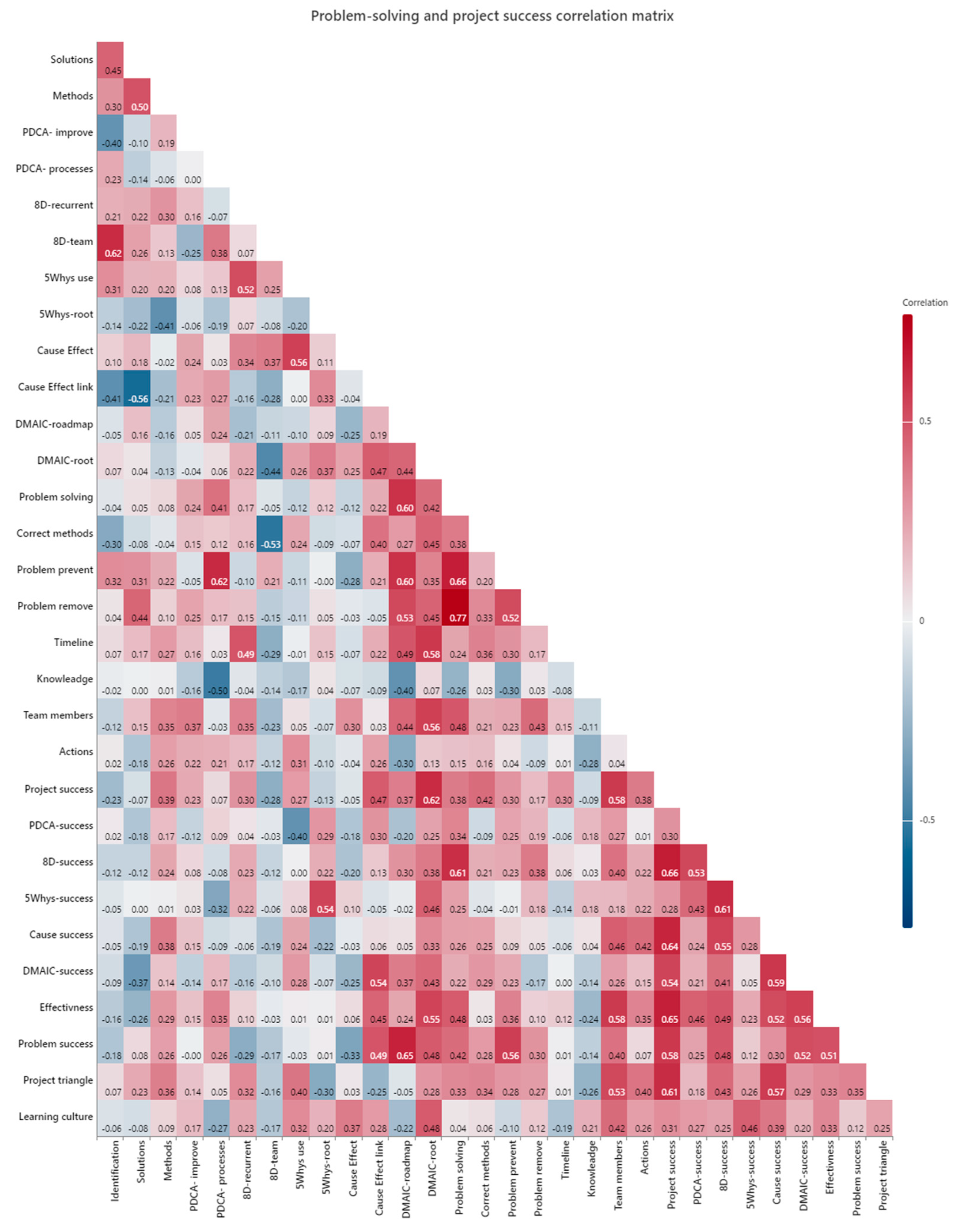 | The Eight Discipline Methodology used for recurrent problems | 24 | 0.160 | (−0.263; 0.531) | 0.956 |